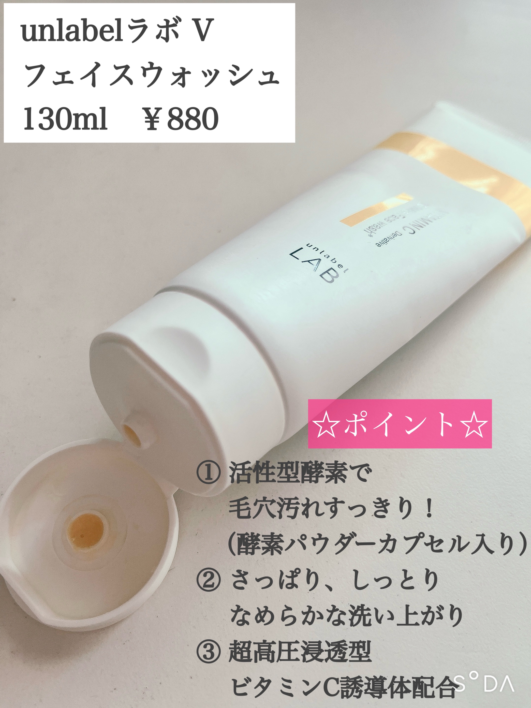 【unlabel Vフェイスウォッシュ】 130g/¥880こちらの洗顔料を使う前はメラノCCのディープクリア酵素洗顔を使用していました。※普段は朝、カルテHDの泡洗顔料を使用していて、週に1〜2回酵素洗顔を使用しています。...