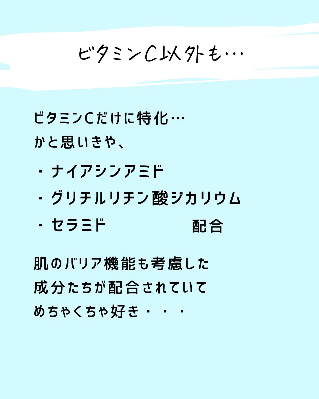 肌が荒れた時にビタミンCがいいとSNSで見かけたというフォロワーさんがいたけど、これは本当に辞めてほしい(濃度にもよるけど) ビタミンCは攻めのケアでもあるから、肌が敏感な時には避けてほしい。 でも、メラニン予防とか毛穴ケアには本当に良い商品でもあると思うから、使い方を間違えずに選択してほしいな!!