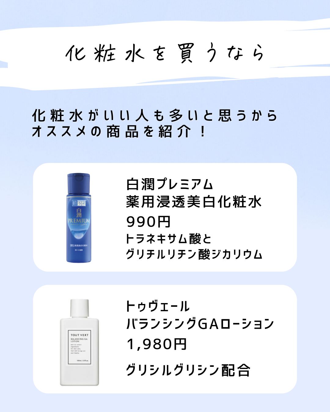 グリシルグリシン(整肌)6%配合+アゼライン酸誘導体(アゼロイルジクリシンK(整肌))2%配合で肌荒れ・皮脂トラブルをケアし、うるおいとキメを整えてくれる テクスチャーは、比較的さらさらっとしていて、冬場だと少し乾燥が気になるが、保湿力はテクスチャーの割には結構あります^ ̳ᴗ ·̫ ᴗ ̳^ バランシングGAローションは、洗顔後すぐの肌に使用するのが良いと公式では書かれていて、ピーリング→これ→先行美容液→化粧水→美容液の順番で使用します!