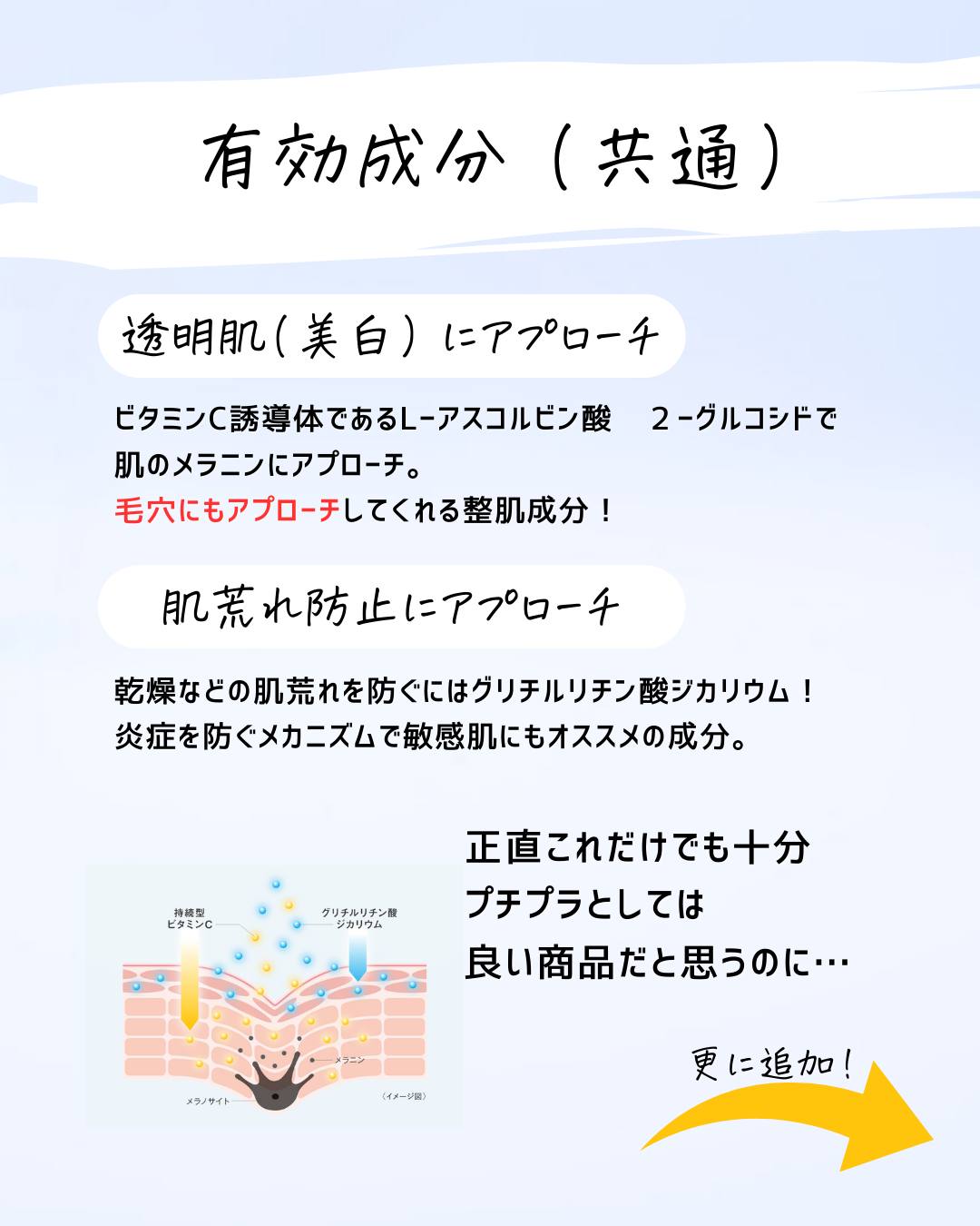 肌が荒れた時にビタミンCがいいとSNSで見かけたというフォロワーさんがいたけど、これは本当に辞めてほしい(濃度にもよるけど) ビタミンCは攻めのケアでもあるから、肌が敏感な時には避けてほしい。 でも、メラニン予防とか毛穴ケアには本当に良い商品でもあると思うから、使い方を間違えずに選択してほしいな!!