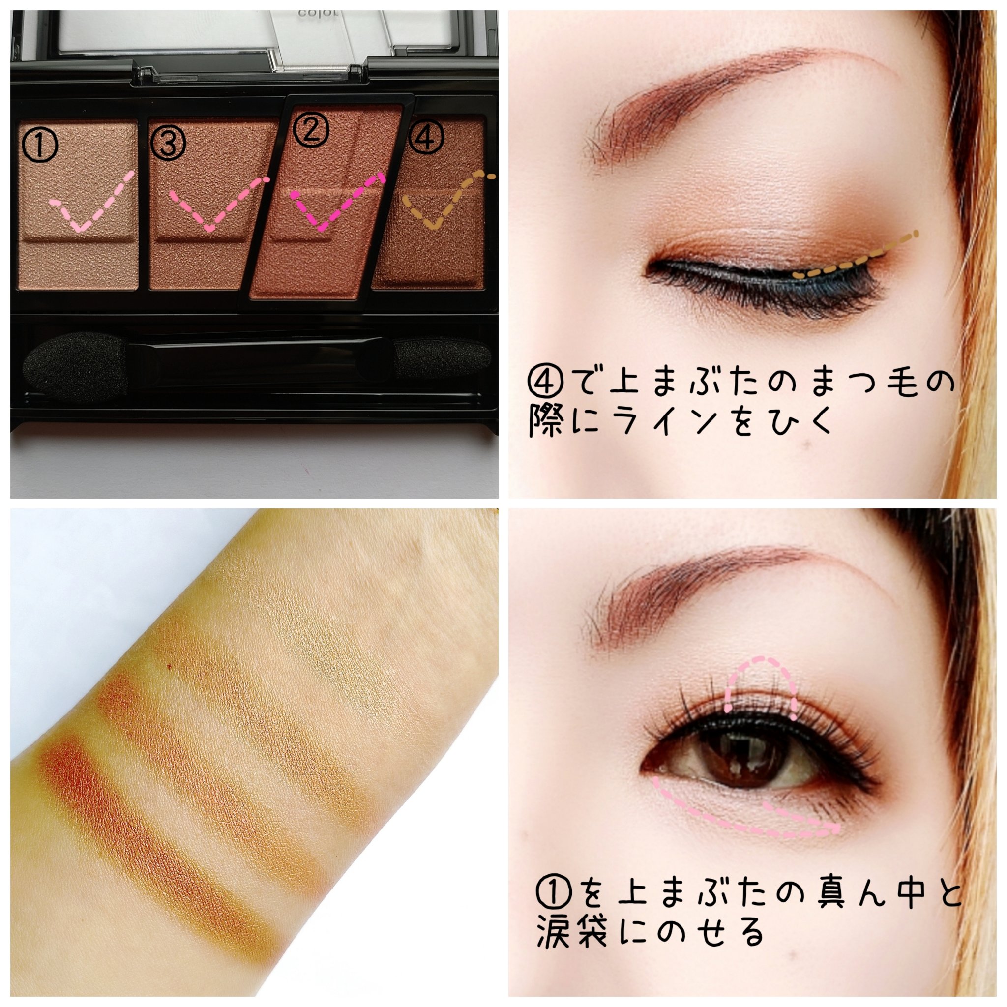 - カラーニュアンスシェードを目尻に入れるだけで目幅を大きく見せ※、抜け感のある明るい大きな目元に仕上るブラウンアイシャドウ。 ブラウン×カラーニュアンスの4色セット。※メイクアップ効果