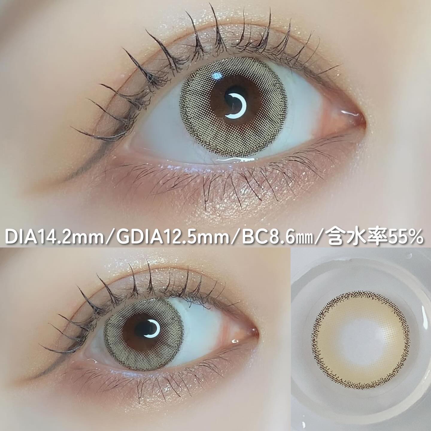 ダークブラウンとイエローのハイライトが綺麗な水光デザインのレンズ✨ ハイライトが瞳に光が差し込んだような輝きを与えてくれるよ☑️ 着色直径も大きすぎないサイズ感だから、ナチュラルに盛りたい日や日常使いにおすすめです! 【どら焼き】というカラー名もかわいい🫶