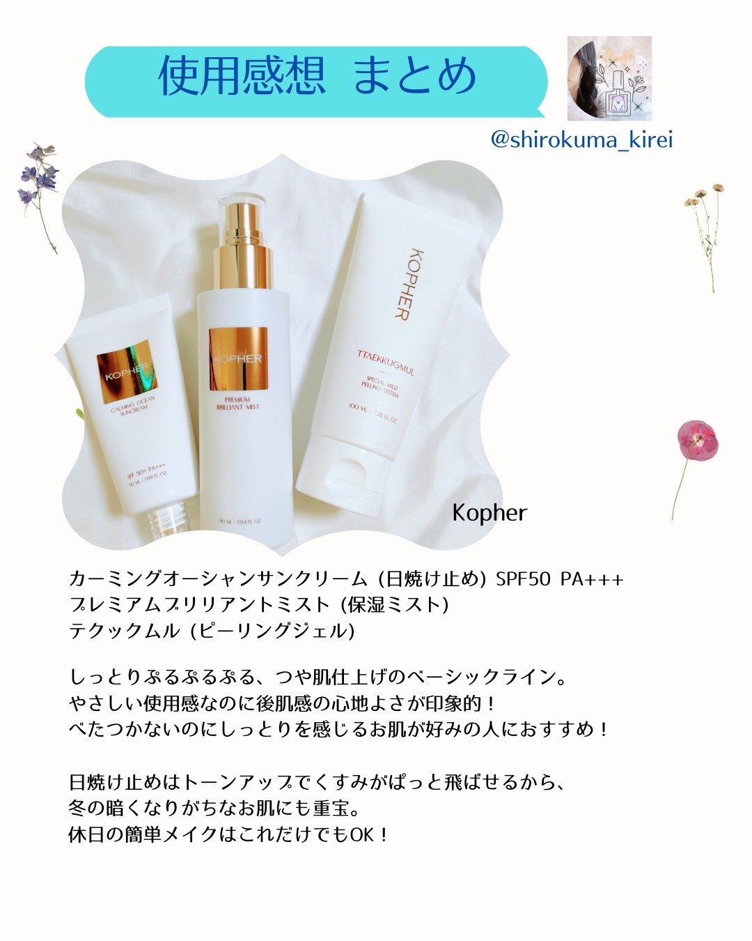 .Kopher(コフェル)カーミングオーシャンサンクリームSPF50PA+++ずっと案件でいただいたものを中心に使っていて、購入してから1年以上経っての開封😂自然なトーンアップというだけあって、ベージュ色のクリームが肌を明るく綺麗に見せてくれ...