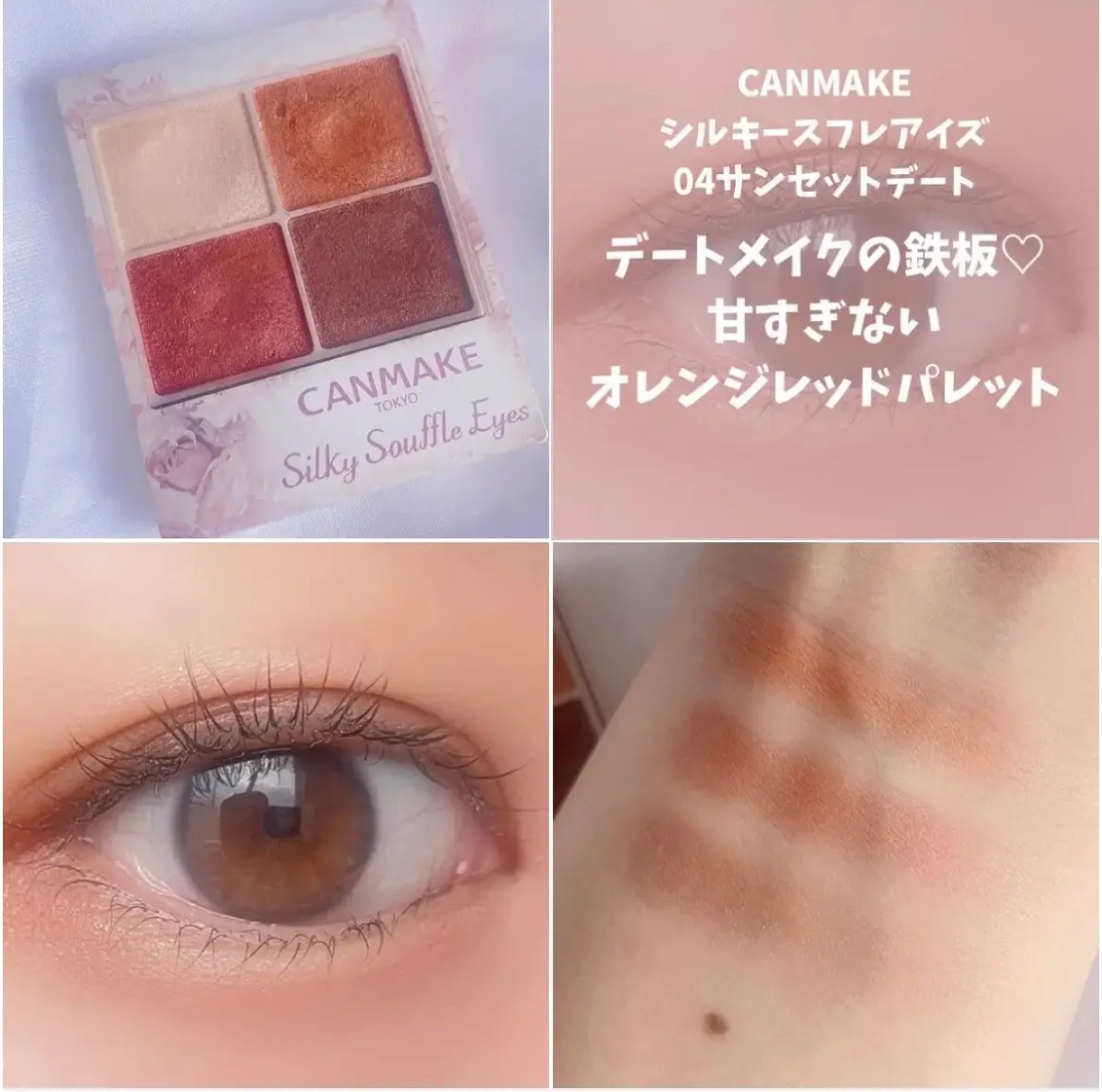 シルキースフレアイズ 通常タイプとマットタイプがあって どっちも大人可愛い透けパレット♡ しっとりとした質感だし これで1,000円以下はすごい… 04 サンセットデート オレンジがかったお洒落レッド ※今夏廃盤 🎨イエベ春、イエベ秋 10色もあるから・ピンク系・オレンジ系で 似た色比較も✨詳しくは画像を見てね!