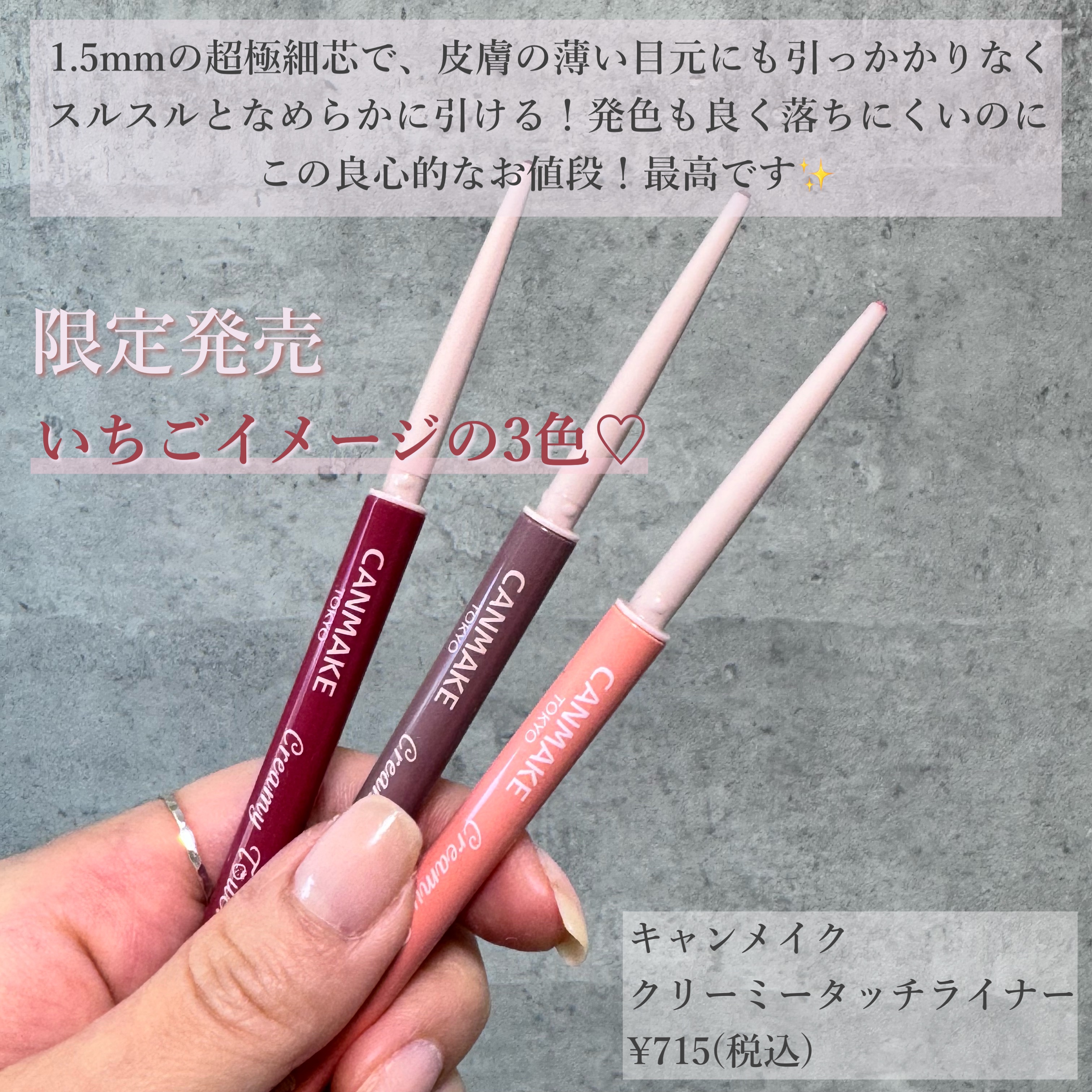 キャンメイクのクリーミータッチライナー限定色の12イチゴストーム、14イチゴキューピッド手に入れました!この限定カラーが発売された時は全然気にもしてなかったんだけど今回再販されるという情報を見てめっちゃ可愛い色してるじゃん!欲しいとなってロフ...