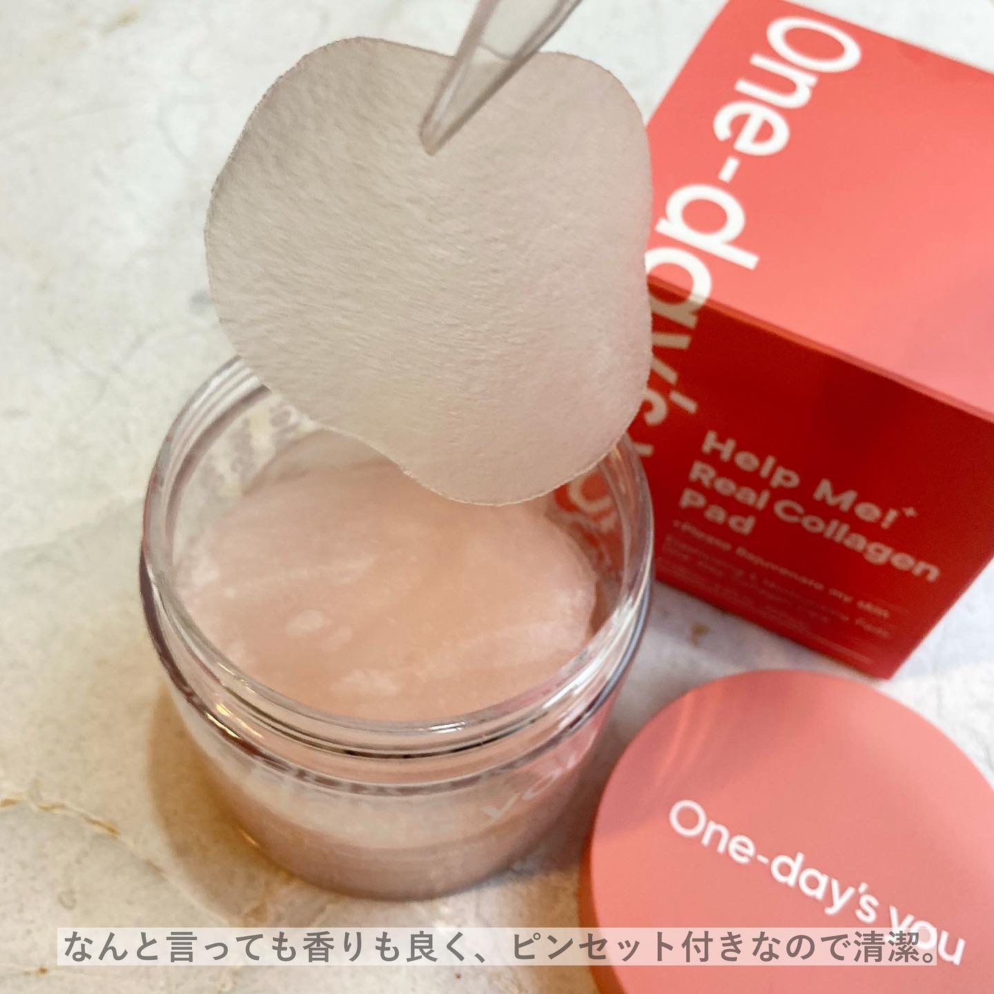 \お気に入りスキンケア紹介/▷One-day'syouヘルプミー!リアルコラーゲンパッド10枚超密着ゼリーフィットパッドでうるおいとツヤ感溢れるお肌へ✨まるでゼリーのようなぷるぷるの薄くてやわらかいゼリーフィットパッドがお肌にピタっと隙間なく...