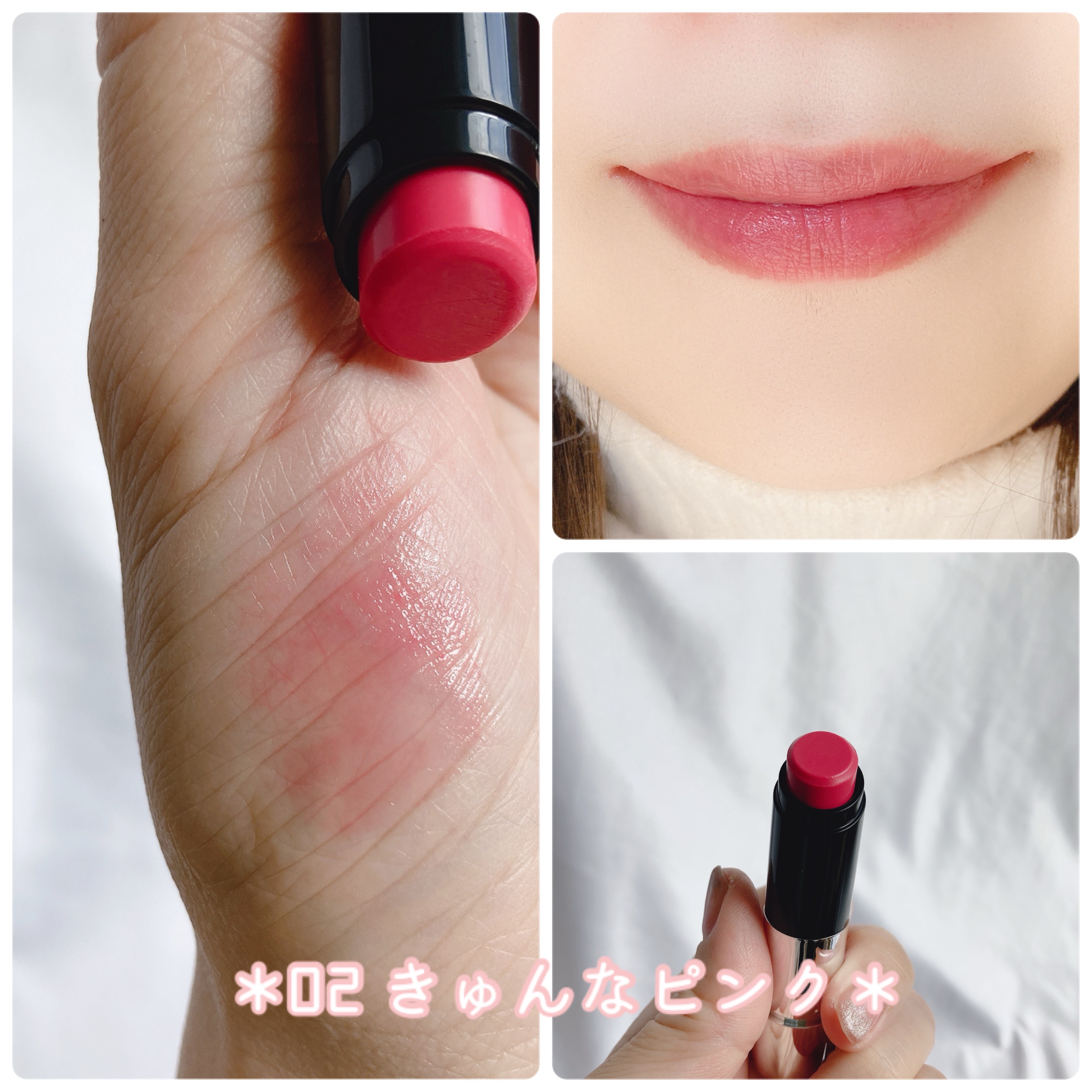 タッチプルーフ成分配合で、動きに強い膜を形成するため、こすれに強く、化粧もちが良いです。 ツヤっと見えるのに少し経つとサラサラの質感になり、マスクにつきにくいのが嬉しいポイント! スティックは体温でとろけるような感覚でスルスルぬれて、肌負担はありません。