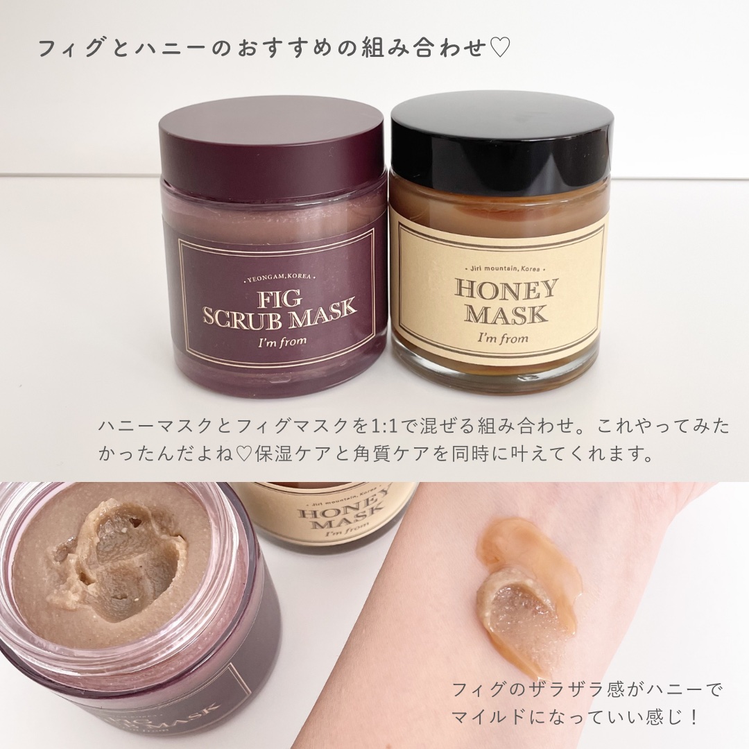 I'mfromハニーマスク/フィグスクラブマスク韓国発の自然派スキンケアブランド「I'mfrom」の人気フェイスマスク!ハニーマスクは天然ハチミツをたっぷり配合。濃厚なハチミツの香りとねっとりしたテクスチャーが特徴で、まるで本物のハチミツを塗...