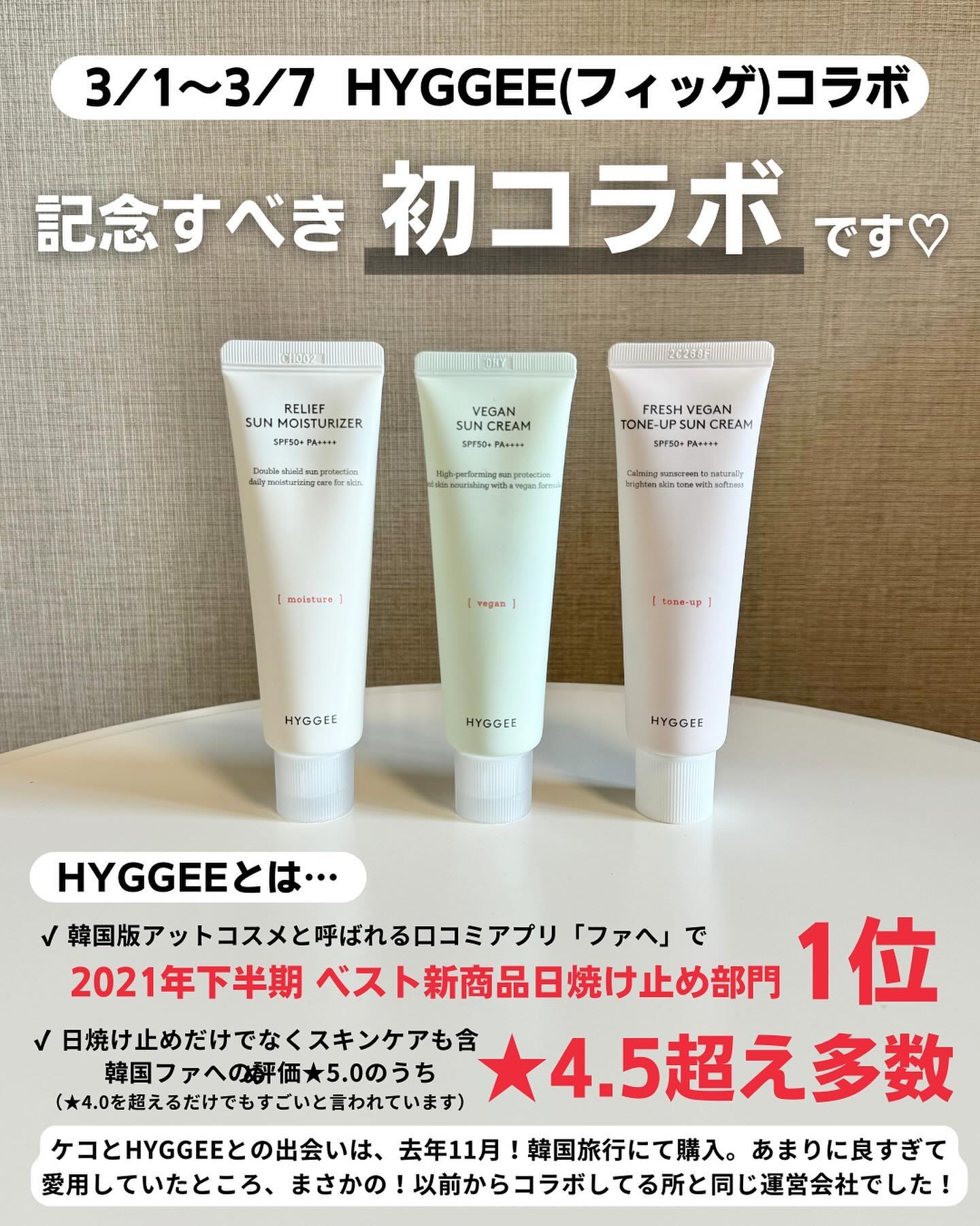\リニュ❣️トーンアップ日焼け止め🍑/HYGGEEフレッシュヴィーガントーンアップサンクリーム50mlSPF50+PA++++韓国のスキンケアブランド「HYGGEE」リニューアルしたフレッシュヴィーガントーンアップサンクリームを使ったよ♡薄い...