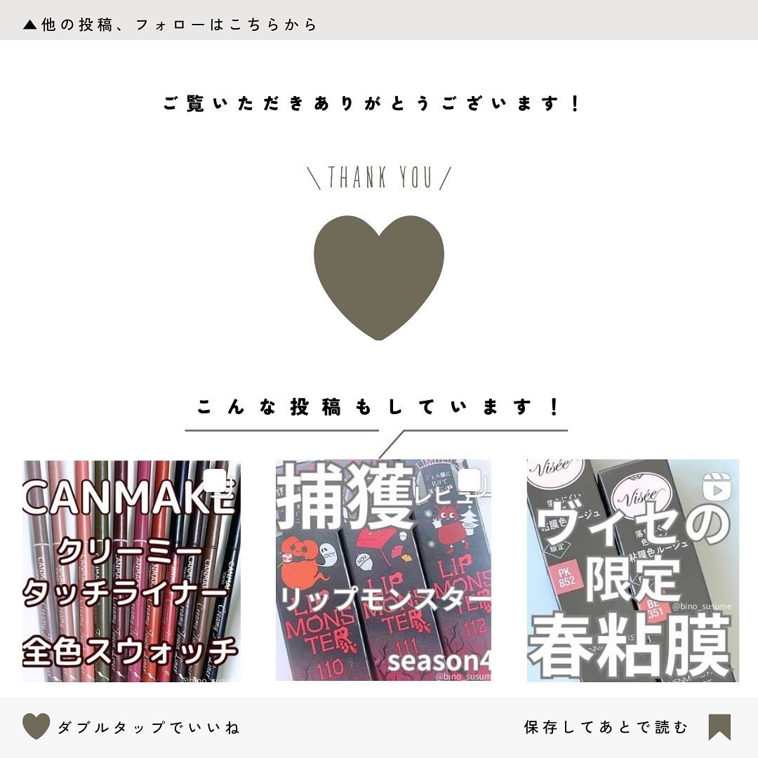 フタを開けるとブラウンでイエベでもオータム寄り?かなと思えるカラー。つけてみると、あれデパスカラー😍❓ これ今回の優勝カラーなんじゃないかな? こちらもイエベよりのカラー。赤なので結構強く出るのかなと思いきや、少しシアーな感じなので、赤といっても肌馴染みよく赤を使い慣れていない方でも使いやすいカラーだと思います。 こちらはイエベ、ブルベ使えるカラーだと思います。他の2色と同じくシアーな感じではあるので、シックなカラーですが深くなりすぎることなく使えます!グリーンパールが配合されていますが、ご覧の通りほとんど目立たないです😊