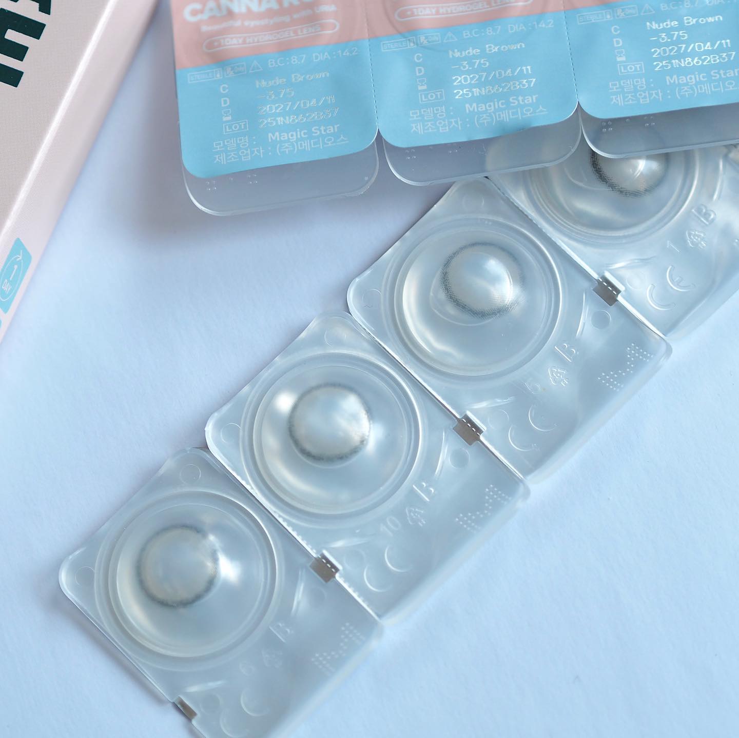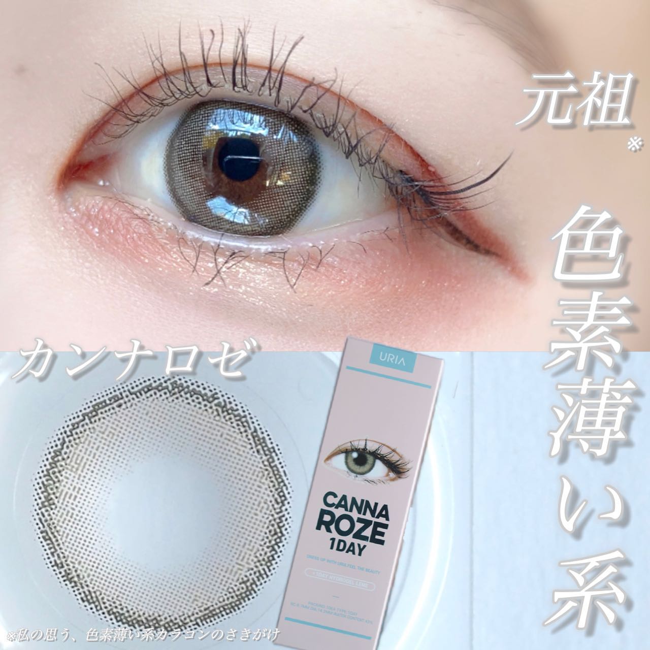 - 【CANNA ROZE(カンナロゼ)】細ふちちゅるんなくすみカラーの大定番レンズ 絶妙にくすみがかったナチュラルな色味が人気の秘密。 生まれつきの瞳のように馴染む、定番の韓国カラコン。 OLIVE GREEN(オリーブグリーン) ■さわやかなオリーブの瞳 虹彩からインスピレーションを受けて完成したオリーブグリーン。 フレッシュさと多彩なカラーが重なることで、奥ゆきのある印象的な瞳に。 NUDE BROWN(ヌードブラウン) ■グレーとブラウンの神秘的な光 グレーとグリーンベースで夢幻的な印象をさりげなく感じられるヌードブラウン。 どこか神秘的で柔らかい瞳の奥ゆかしい雰囲気を演出。 BEIGE BROWN(ベージュブラウン) ■華やかな王道ミルキーベージュ 水彩画のグラデーションのようにしっとりとした質感と、なめらかなカラーが調和したベージュブラウン。ライトなベージュで虹彩の色と重なって、肌を明るく照らします。 BABY BROWN(ベイビーブラウン) ■愛らしいフェミニンカラー あたたかな春の日を連想させるベイビーブラウン。 純粋さを秘めたベージュとベビーピンクの調和は、日常使いにも最適なレンズです。 カラーコンタクトレンズの不適正使用による眼障害の危険性等などがあります。 ●コンタクトレンズは高度管理医療機器です。不十分な洗浄・消毒など不適切なケアや、長時間・交換期間を超えた装用により、アレルギー性結膜炎、角膜感染症、角膜潰瘍等の重篤な眼障害が発生する危険性があります ●ご使用前に取扱説明書を確認してください 使用上の留意事項 ●眼科医院等を受診してからお求めください ●眼に異常を感じたら直ちにレンズ使用を中止し、お近くの眼科等で診察を受けてください ●医師の指示にしたがってご使用ください ●コンタクトレンズを装用する場合、自覚症状がなくても、眼科医院等での定期検査を受けてください ●レンズに不具合がある場合は使用しないでください