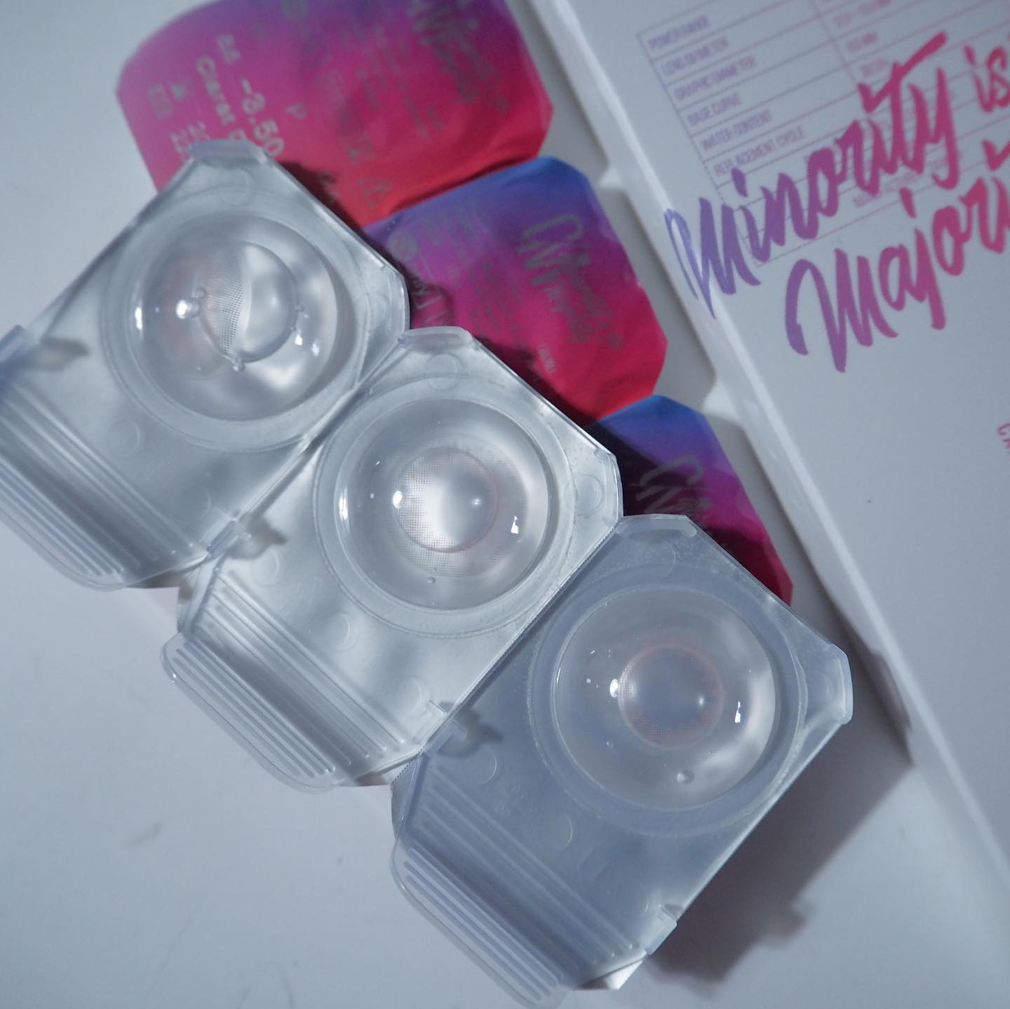 クラレットダズルは白みっぽい中にくすみピンクやパープルが見え、しっかりと目元の雰囲気を変化させるカラー。 淡く儚いコンタクトだからこそ、少し派手さがあるアイシャドウとの相性も良く感じました🩷