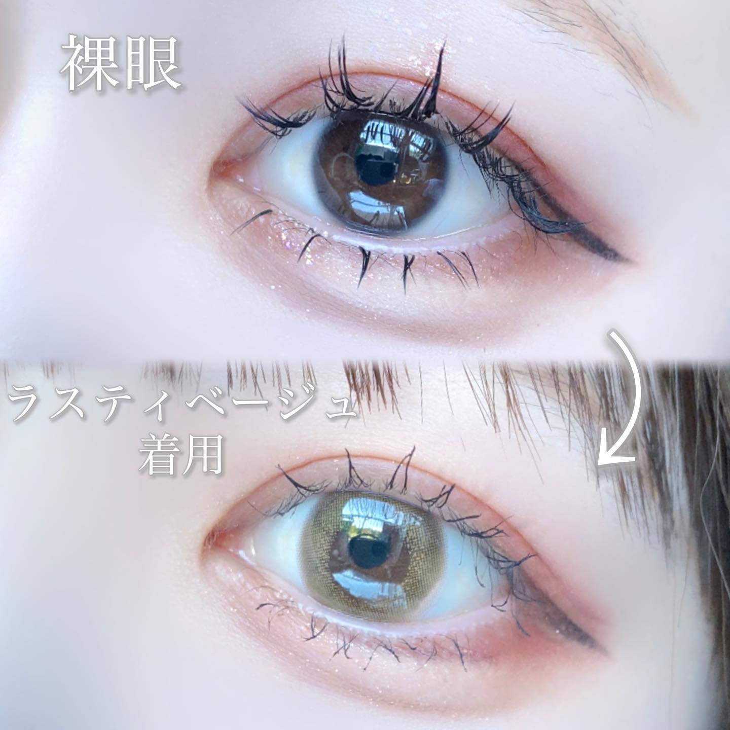 このレンズ、想像よりもかなり可愛くてびっくり! 瞳に溶け込むようなブラウンベージュで色素薄めeyeにしてくれる₍ꪔ̤̫₎ 着色直径がほどよく瞳のサイズを大きく見せてくれる感じで本当に可愛い、、、、🤎😌 可愛さ更新したカラコンです₍ꪔ̤̫₎