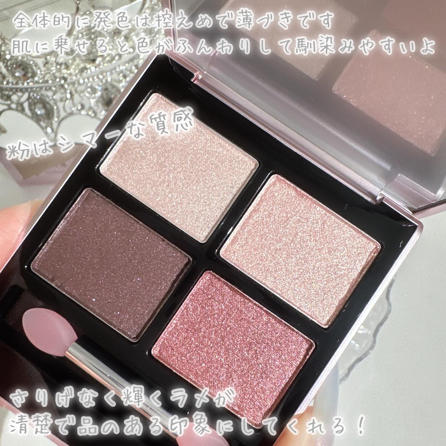 美容オイル配合で目元を乾燥から守りながらキラめく指塗り艶アイシャドウパレット♡ スフレのようなふんわりソフトなテクスチャーで、ラメのキラキラと艶、パレットの配色が絶妙なの✨ 指塗りでキラキラと艶が綺麗にのって、ベースカラーはハイライトにも使えてすごく便利✨