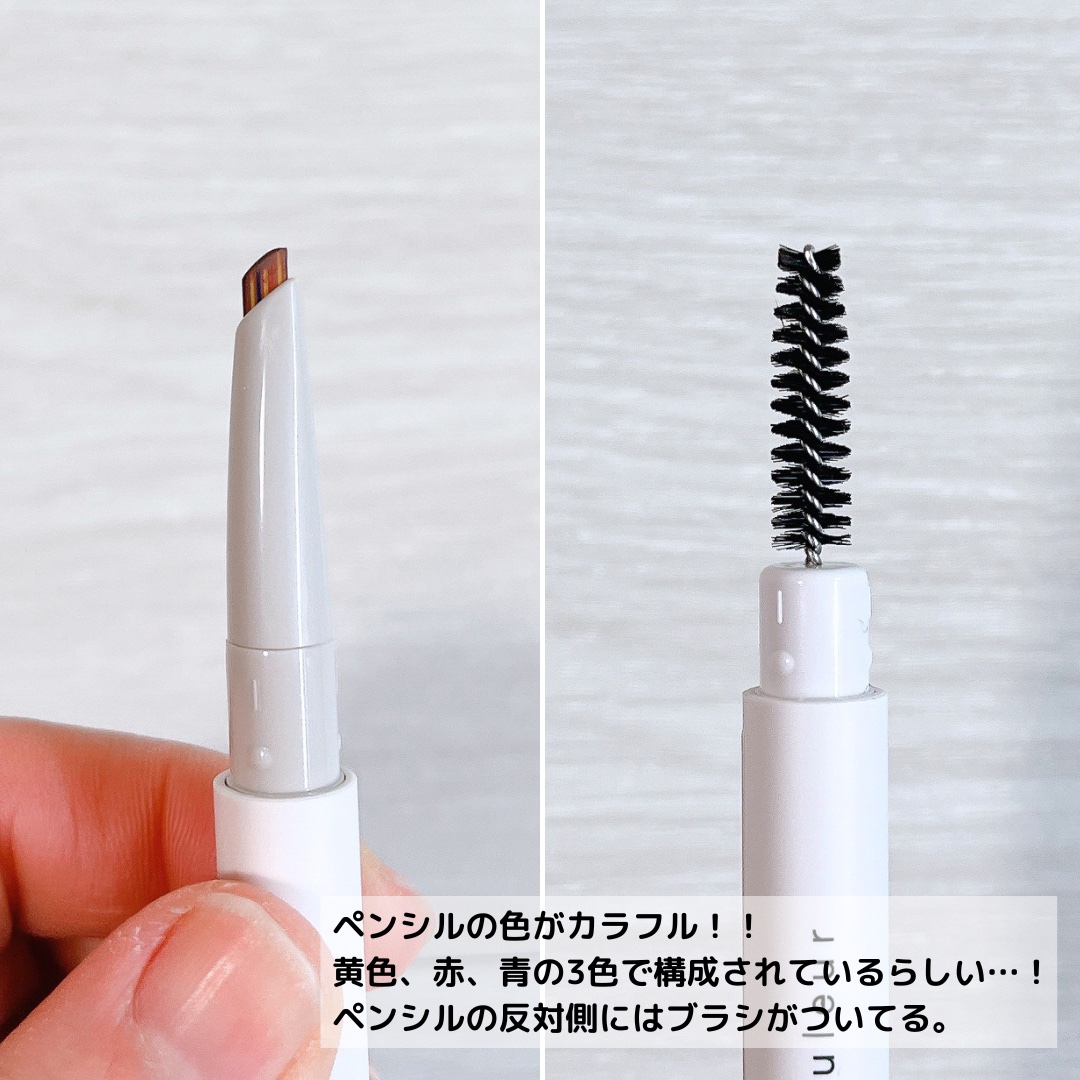 - ◆黄・赤・青の3色からなる多色な芯で、ペンシルでありながら立体感のあるあか抜け眉を演出 黒の顔料を使用せず、黄・赤・青の3色を混ぜ合わせ自然な眉色を表現。 多色で芯を構成するため、様々な眉色や髪色にもしっくりなじむ。ニュートラルなブラウンカラー。 ◆涙型の芯先形状で、面でも線でも描きやすい テクニックいらずで、広い面も細い箇所も描きやすい涙型の芯先形状。 ふんわり立体感がありながらも、眉尻などの細かい箇所はシャープで締まった印象へ。 ◆密着感があり、仕上がりが長持ち。化粧もち成分配合 肌や眉毛に密着し、汗・皮脂に強い粉体配合でくずれにくい処方設計。 ウォータープルーフ処方を採用。