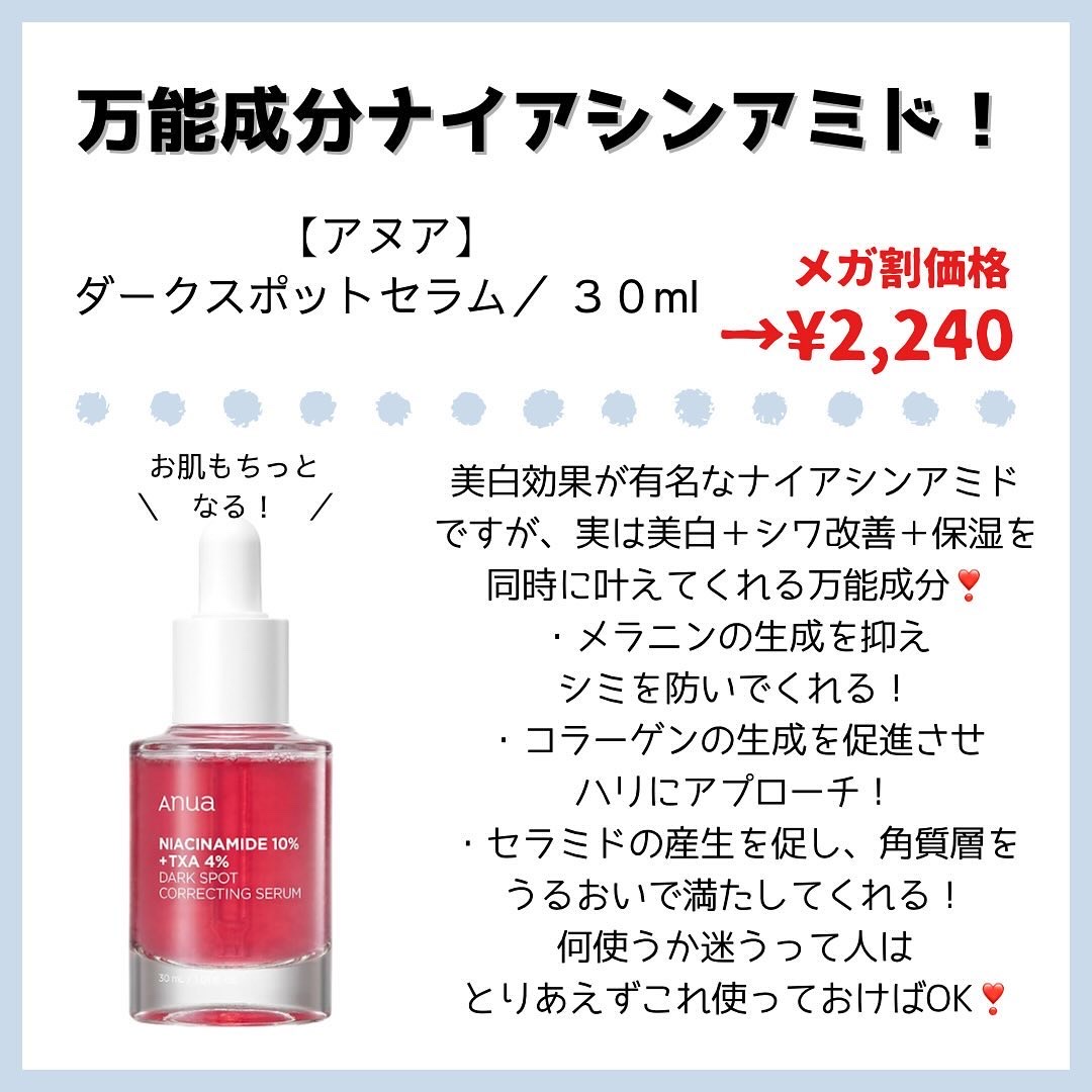 Anua 桃70%ナイアシンセラム | 2,579円 |