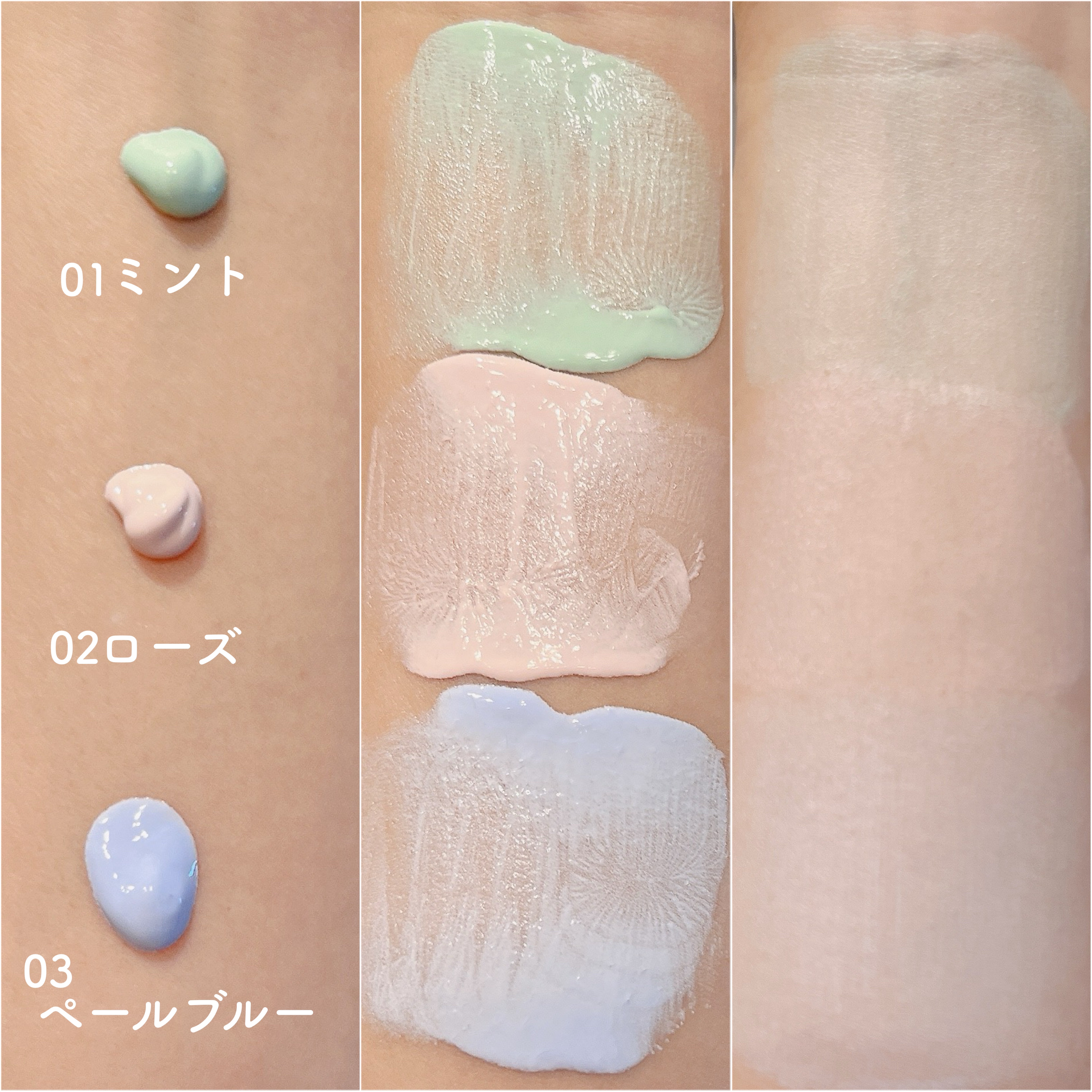- 01|ミント…赤み、ニキビ跡をおさえて透明感。 肌悩みクリア×保湿=欠点見せずに理想肌へ 華やかでなめらかな肌トーン 02|ローズ…クスミをカバーして、血色感。 肌悩みクリア×保湿=欠点見せずに理想肌へ 華やかでなめらかな肌トーン 03|ペールブルー…黄み、にごり感をおさえて、澄んだ印象に 肌悩みクリア×保湿=欠点見せずに理想肌へ 華やかでなめらかな肌トーン
