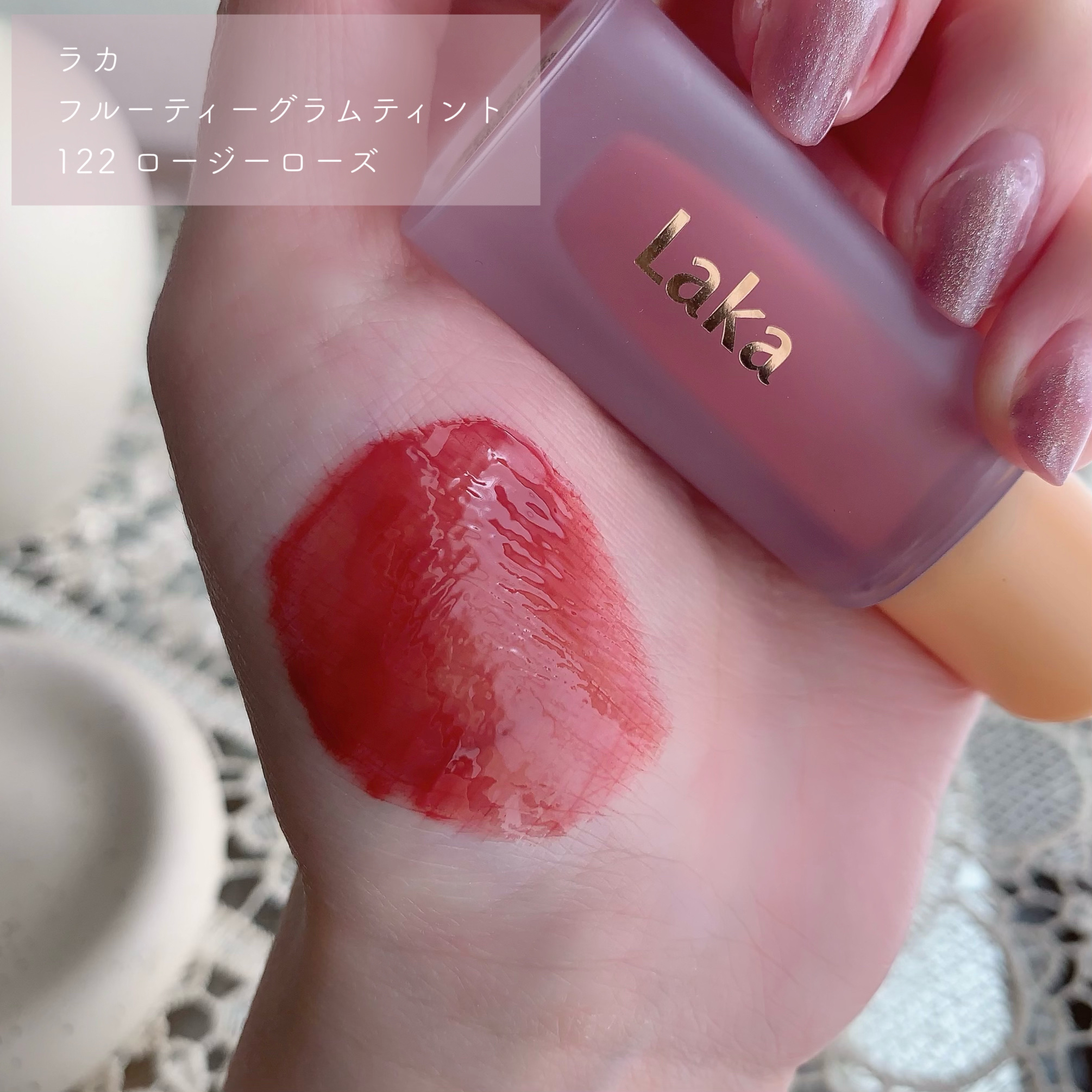 Lakaフルーティーグラムティント紹介♡おはようございます☺︎mです♪今回はメガ割で購入した際におまけで頂いたLakaのティントを使用したので、その感想をお届けします♡【使った商品】Laka フルーティーグラムティント【色味】122 ロージー...