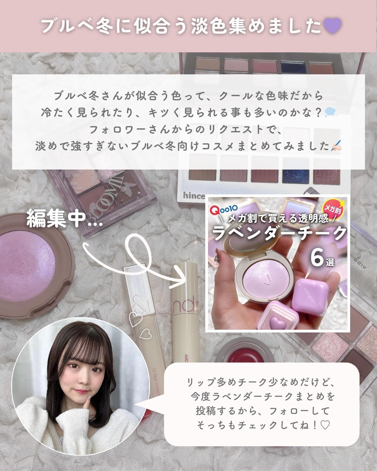 「キツくならない」最高すぎ💕 全部気になる💕ファーストがイエベ秋で、セカンドがブルベ夏なんだけど、そういう人向けのコスメとかあるかな??!! 黄みがあるような感じかな?!