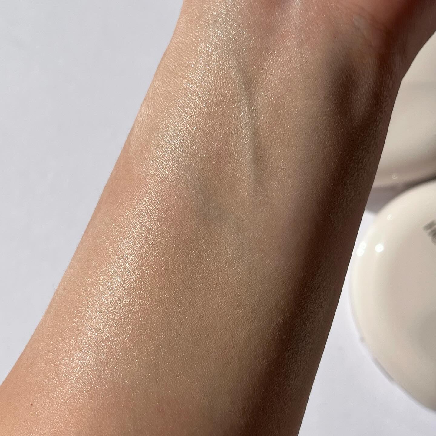 - テクスチャーは、肌が呼吸をするように、軽くて快適な、スキンブリージングテクスチャーです。 スキンケア成分を70%も使っているので、オイル感のあるツヤではなく、しっとりとして潤いが感じられる水分GLOWです。 光の屈折を利用して肌が輝きます。 パフでたたきこむことで、ぴたっと肌に密着し、毛穴もしっかりカバーしてくれます。