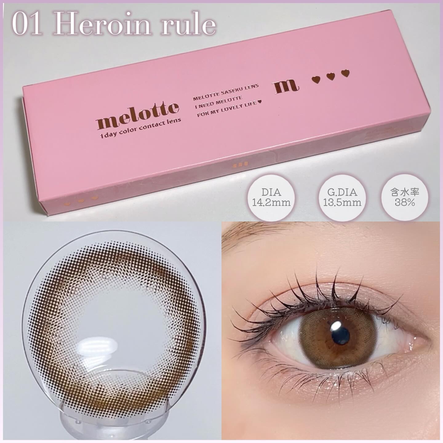 - 時には甘く、時にはオトナに。デザインだけでなく使いやすさにもこだわった、ナチュラルだけどしっかり可愛くなれるラインナップ。 一からこだわってつくった、いろんなメイクやファッションに合わせて楽しめるオトナ女子もつかいやすいナチュラルカラーのレンズデザインです。 毎日使うものだからこそ、レンズスペックまでこだわりました。 〇超薄型レンズ採用 0.06mmの超薄型レンズを採用。負担の少ない使い心地で、快適にお使いいただけます。 ※装用感には個人差があります。 〇日差しもケア UVカット機能 紫外線UV-Aを約50%、UV-Bを約95%、レンズに配合されたUV吸収材でカット。 ※目全体及び目の周辺を完全に覆っているわけではないのでUV防止用眼鏡・サングラスの代用にはなりません。 〇うるおい成分配合 うるおい成分、"MPCポリマー"がレンズをやさしく包み込むので、うるおい長持ち。 〇乾きにくい低含水レンズ 低含水レンズ素材は、水分蒸発量が少ないため、乾きにくいのが特徴。 カラーコンタクトレンズの不適正使用による眼障害の危険性等などがあります。 ●コンタクトレンズは高度管理医療機器です。不十分な洗浄・消毒など不適切なケアや、長時間・交換期間を超えた装用により、アレルギー性結膜炎、角膜感染症、角膜潰瘍等の重篤な眼障害が発生する危険性があります ●ご使用前に取扱説明書を確認してください 使用上の留意事項 ●眼科医院等を受診してからお求めください ●眼に異常を感じたら直ちにレンズ使用を中止し、お近くの眼科等で診察を受けてください ●医師の指示にしたがってご使用ください ●コンタクトレンズを装用する場合、自覚症状がなくても、眼科医院等での定期検査を受けてください ●レンズに不具合がある場合は使用しないでください