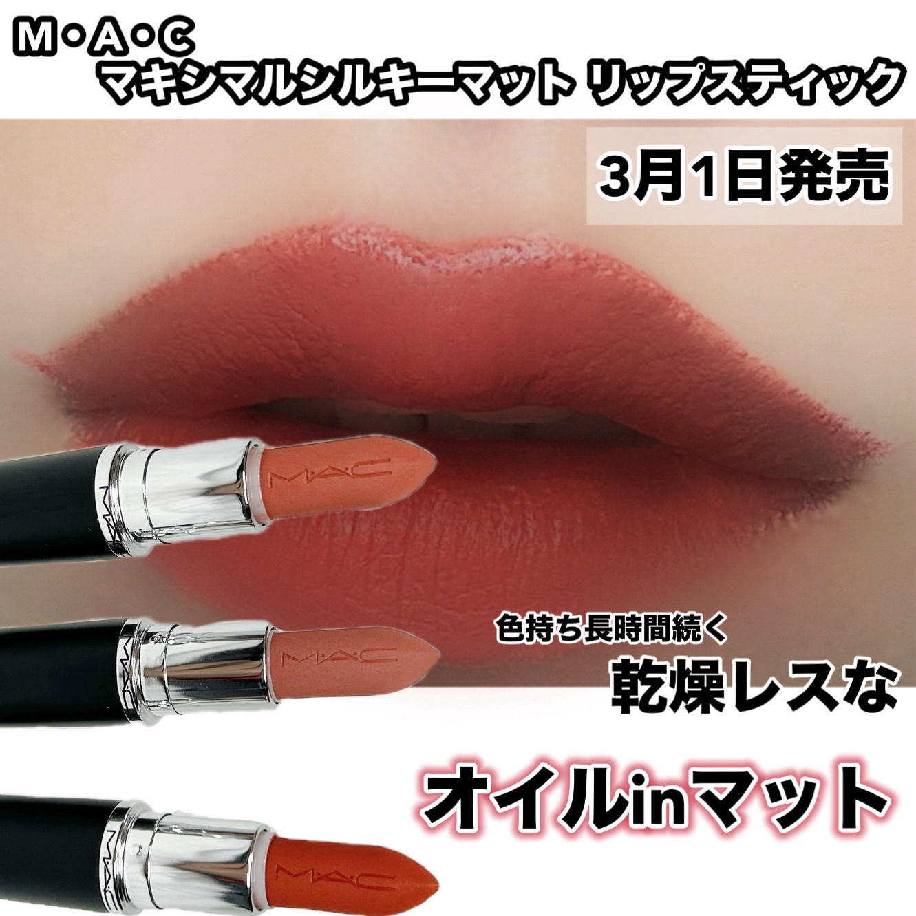 - ïŒäŸ¡æ Œæ¹å®ïŒ2025幎7æ1æ¥ããÂ¥4,620ïŒçšèŸŒïŒããÂ¥4,400ïŒçšèŸŒïŒã«æ¹å®ããããŸãã ããããªããã¯ãããŸã§é²åã è²ãã¡12æé*ç¶ãã®ã«ä¹Ÿç¥ã¬ã¹ãªæ°æèŠ âãªã€ã«inãããâ Mã»Aã»Cã®ããã·ãã«èªçã æ¯æ¥ã€ããããªããããªã ããŒã ã®ãããªãªããããªè³ªæãšã€ãå¿å°ã12æéæç¶*ã ããã®ãŸãŸã®èªåããã ããã«äžæ©å ãžèžã¿åºãããããªèªä¿¡ãåã« *åç²§æã¡(è²æã¡)ããŒã¿ååŸæžã¿ã(åœç€Ÿèª¿ã¹ã广ã«ã¯å人差ããããŸãã) â ãªãããªçºè²ãšã«ã©ãŒã©ã€ã³ããã MACç¬èªã®ãã¯ãããžãŒããªãããã°ã¡ã³ããã©ãŒãã¥ã©ã«ããé®®ãããªçºè²ãå®çŸã 人æ°è²ãç¶ç¶ããªããããæ°ãã«ã¢ãŒãã£ã¹ããå³éžãã25ã·ã§ãŒãã¯ã äžäººäžäººã®åæ§ãã¹ã¿ã€ã«ãé åãé«ããååšæãæŸã€it ã«ã©ãŒãã©ã€ã³ãããã â¡ã¹ãã¬ã¹ããªãŒãªã€ãå¿å° ããããã¯ã¹ãã£ãŒïŒä¹Ÿç¥ãããããšãããã¬ãã£ãã€ã¡ãŒãžãææããããªã€ã« in ããã ãã©ãŒãã¥ã©ã èªç¶ç±æ¥ã®ãªãŒã¬ããã¯ã®ã·ã¢ãã¿ãŒãã³ã³ã¢ãã¿ãŒãã³ã³ããããªã€ã«é å**ã§æ¿å¯ãªæœ€ããäžããé©ãã®ãªããããªä»ãå¿å°ãšãã£ããæãå¶ããã éŠãã¯ãã·ã°ããã£ãŒã§ããããã©ãç¶ç¶ã **ã·ã¢ãã¿ãŒïŒã·ã¢è(ä¿æ¹¿æå) ãã³ã³ã¢ãã¿ãŒïŒã«ã«ãªè(ä¿æ¹¿æå) ãã³ã³ããããªã€ã«ïŒã€ã·æ²¹(ä¿æ¹¿æå) â¢12æéæç¶*ãšããã©ã¹ãã£ã³ã°å ãã¿ãªãšåã«å¯çããªãããããªããã«å¯ãæ·»ããé®®ãããªçºè²ãã€ãå¿å°ãã12æé*æç¶ã åããã£ã³ãã®ããã«æããã«ãããã§ããŠã©ããªç¬éãèªä¿¡ã®æãŠãåã«ã *åç²§ãã¡ããŒã¿ååŸæžã¿ (åœç€Ÿèª¿ã¹ã广ã«ã¯å人差ããããŸã) â£é åçãªæ°ããã±ãŒãž åçãã©ã¹ããã¯ãçŽ30ïŒ æ¡çšãããç°å¢ã«ããããæ°ããã±ãŒãžãžãšãã¯ãŒã¢ããã çšããéåæã®ããæè§Šã¯ã©ã°ãžã¥ã¢ãªãŒãªæ°æã¡ãé«ããŠãããã ãŸãããªããã«ã¯MACã®ãšã³ãã¹å å·¥ãã