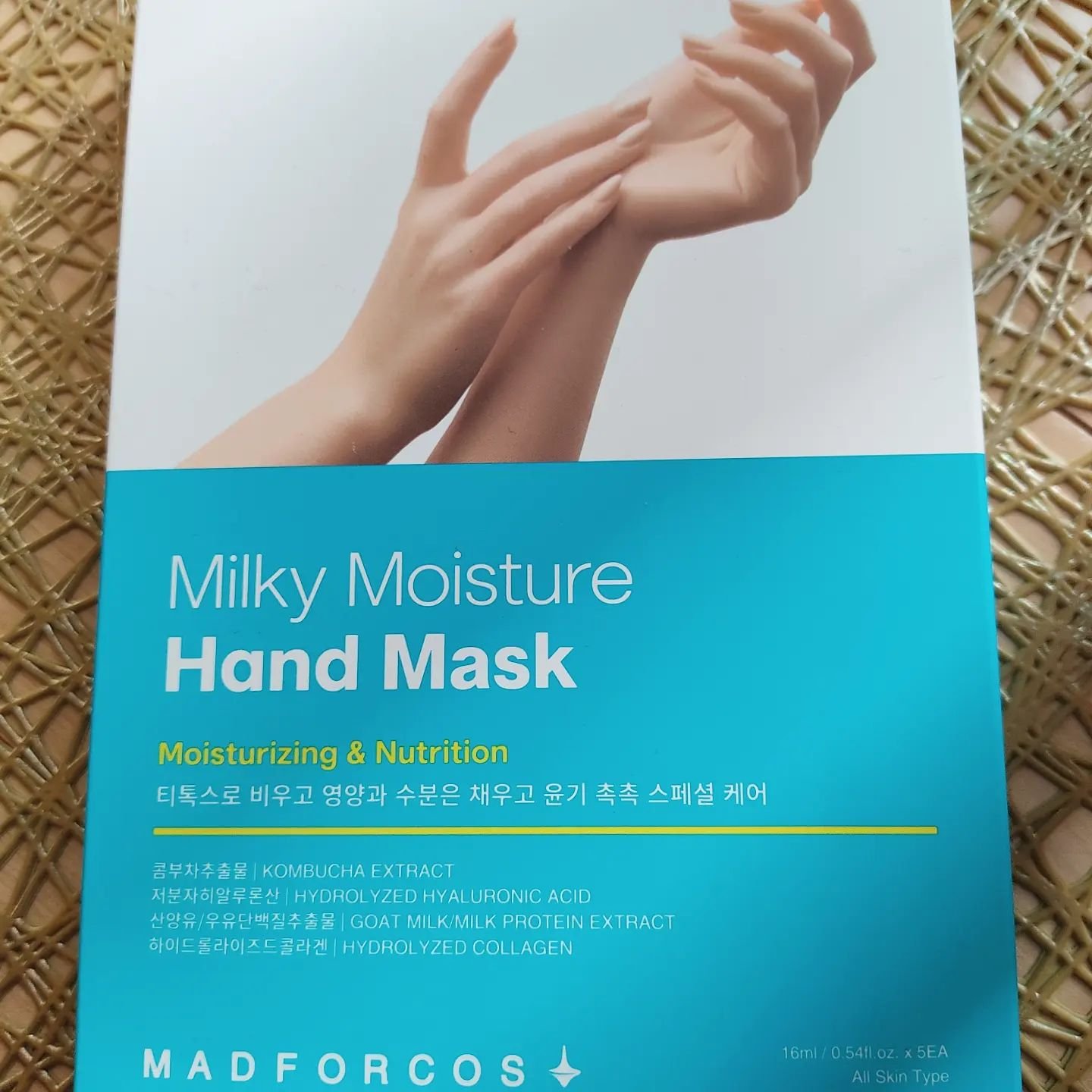 MADFORCOSミルキーモイスチャーハンドマスク。15分から20分のスペシャルケアで、乾燥する手をツヤツヤにしてくれるハンドマスクです✨✨手袋の中にエッセンスがたっぷり入っています🩵指定の時間をおいて手袋を外しエッセンスをなじませます。仕上...