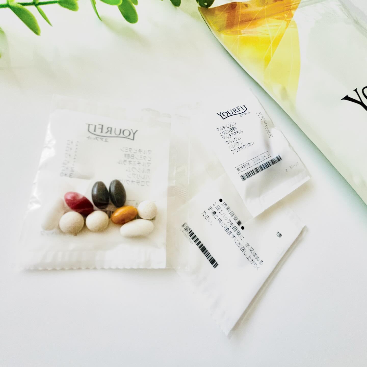 簡単なアンケートに答えていくだけで、自分の栄養状態(なにが不足してる・なにを摂取し過ぎてる)を分析して1人1人違うサプリメントを組み合わせてオリジナルのものを紹介してくれます。 実際に届いたものは1日分ずつ包装されているので、数種類飲むのに手軽で時短でした! サプリを数種類飲むときに、いくつもボトルやパウチを開け締めするのは面倒だったので「YOURFIT」は良かったです😊 1つ1つの効能が詳しく説明されていたり、アンケートに基づいた生活習慣や食についてのアドバイスもしてくれるのが勉強になりました。