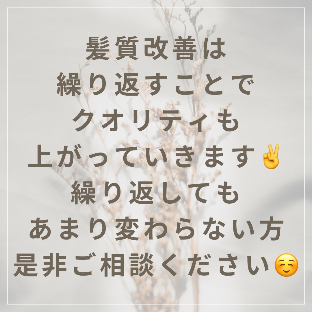 髪質でお悩みの方お任せ下さい☺️ 髪質改善など美髪を作ることに特化した美容師をさせて頂いております 髪の毛のダメージを無くしたい ツヤツヤの状態を褒められたい InstagramのDMから年内限定で特別プライスでのご案内が可能となっております✨