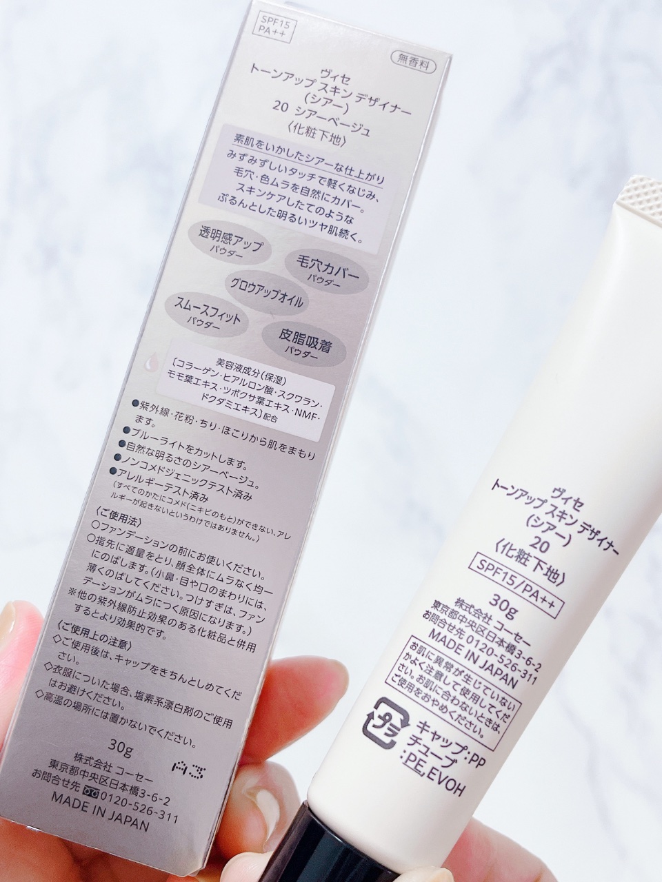 - <01 ラベンダー> 水、シクロペンタシロキサン、タルク、ジメチコン、エタノール、ジカプリン酸ネオペンチルグリコール、ジカプリン酸PG、メチルトリメチコン、メトキシケイヒ酸エチルヘキシル、(ジメチコン/ビニルジメチコン)クロスポリマー、ラウリルPEG-9ポリジメチルシロキシエチルジメチコン、PEG-9ポリジメチルシロキシエチルジメチコン、(ジフェニルジメチコン/ビニルジフェニルジメチコン/シルセスキオキサン)クロスポリマー、BG、ポリメチルシルセスキオキサン、セリン、ツボクサ葉エキス、トコフェロール、ドクダミエキス、ヒアルロン酸Na、モモ葉エキス、ラベンダー油、水溶性コラーゲン、BHT、シリカ、ジステアルジモニウムヘクトライト、スクワラン、ステアラルコニウムヘクトライト、セスキオレイン酸ソルビタン、ハイドロゲンジメチコン、レシチン、塩化Na、合成フルオロフロゴパイト、水酸化Al、窒化ホウ素、フェノキシエタノール、メチルパラベン、グンジョウ、マイカ、酸化チタン、酸化亜鉛、赤226 <02 ピンクベージュ> 水、シクロペンタシロキサン、タルク、ジメチコン、エタノール、ジカプリン酸ネオペンチルグリコール、ジカプリン酸PG、メチルトリメチコン、メトキシケイヒ酸エチルヘキシル、(ジメチコン/ビニルジメチコン)クロスポリマー、ラウリルPEG-9ポリジメチルシロキシエチルジメチコン、PEG-9ポリジメチルシロキシエチルジメチコン、(ジフェニルジメチコン/ビニルジフェニルジメチコン/シルセスキオキサン)クロスポリマー、BG、ポリメチルシルセスキオキサン、セリン、ツボクサ葉エキス、トコフェロール、ドクダミエキス、ヒアルロン酸Na、モモ葉エキス、ラベンダー油、水溶性コラーゲン、BHT、シリカ、ジステアルジモニウムヘクトライト、スクワラン、ステアラルコニウムヘクトライト、セスキオレイン酸ソルビタン、トリエトキシカプリリルシラン、ハイドロゲンジメチコン、レシチン、塩化Na、合成フルオロフロゴパイト、水酸化Al、窒化ホウ素、フェノキシエタノール、メチルパラベン、酸化チタン、酸化亜鉛、酸化鉄 <03 グリーン> 水、シクロペンタシロキサン、タルク、ジメチコン、エタノール、ジカプリン酸ネオペンチルグリコール、ジカプリン酸PG、メチルトリメチコン、メトキシケイヒ酸エチルヘキシル、(ジメチコン/ビニルジメチコン)クロスポリマー、ラウリルPEG-9ポリジメチルシロキシエチルジメチコン、PEG-9ポリジメチルシロキシエチルジメチコン、(ジフェニルジメチコン/ビニルジフェニルジメチコン/シルセスキオキサン)クロスポリマー、BG、ポリメチルシルセスキオキサン、セリン、ツボクサ葉エキス、トコフェロール、ドクダミエキス、ヒアルロン酸Na、モモ葉エキス、ラベンダー油、水溶性コラーゲン、BHT、シリカ、ジステアルジモニウムヘクトライト、スクワラン、ステアラルコニウムヘクトライト、セスキオレイン酸ソルビタン、トリエトキシカプリリルシラン、ハイドロゲンジメチコン、レシチン、塩化Na、合成フルオロフロゴパイト、水酸化Al、窒化ホウ素、フェノキシエタノール、メチルパラベン、グンジョウ、酸化チタン、酸化亜鉛、酸化鉄 <20 シアーベージュ> 水、BG、DPG、メトキシケイヒ酸エチルヘキシル、ミネラルオイル、ジエチルアミノヒドロキシベンゾイル安息香酸ヘキシル、トリエチルヘキサノイン、ステアリン酸、シリカ、アスコルビン酸、セリン、ツボクサ葉エキス、トコフェロール、ドクダミエキス、ヒアルロン酸Na、モモ葉エキス、水溶性コラーゲン、BHT、PEG-32、PEG-6、TEA、(ジフェニルジメチコン/ビニルジフェニルジメチコン/シルセスキオキサン)クロスポリマー、アクリレーツコポリマー、カルボマー、キサンタンガム、ジメチコン、スクワラン、ステアリン酸グリセリル、ステアリン酸グリセリル(SE)、セスキオレイン酸ソルビタン、セテアリルアルコール、タルク、トリセテアレス-4リン酸、ポリステアリン酸スクロース、ポリソルベート80、ラウリル硫酸Na、レシチン、合成フルオロフロゴパイト、水酸化Al、水添ポリイソブテン、水添レシチン、フェノキシエタノール、メチルパラベン、マイカ、酸化チタン、酸化鉄 <10 パールローズ> 水、シクロペンタシロキサン、ジメチコン、エタノール、ジカプリン酸ネオペンチルグリコール、ジカプリン酸PG、メチルトリメチコン、メトキシケイヒ酸エチルヘキシル、(ジメチコン/ビニルジメチコン)クロスポリマー、ラウリルPEG-9ポリジメチルシロキシエチルジメチコン、PEG-9ポリジメチルシロキシエチルジメチコン、(ジフェニルジメチコン/ビニルジフェニルジメチコン/シルセスキオキサン)クロスポリマー、BG、ポリメチルシルセスキオキサン、セリン、ツボクサ葉エキス、トコフェロール、ドクダミエキス、ヒアルロン酸Na、モモ葉エキス、ラベンダー油、水溶性コラーゲン、BHT、シリカ、ジステアルジモニウムヘクトライト、スクワラン、ステアラルコニウムヘクトライト、セ