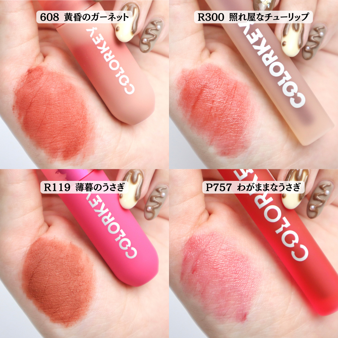【ブランド】COLORKEY【モデル】CKムースMリップ【カラー】R109【質感】マット【色味】ローズレッド中国ブランドのティントがよく出す「泥リップ」(おそらくリップカラーの製品のあるどの国も作ってますが、なぜか中国ではやりのイメージがあり...