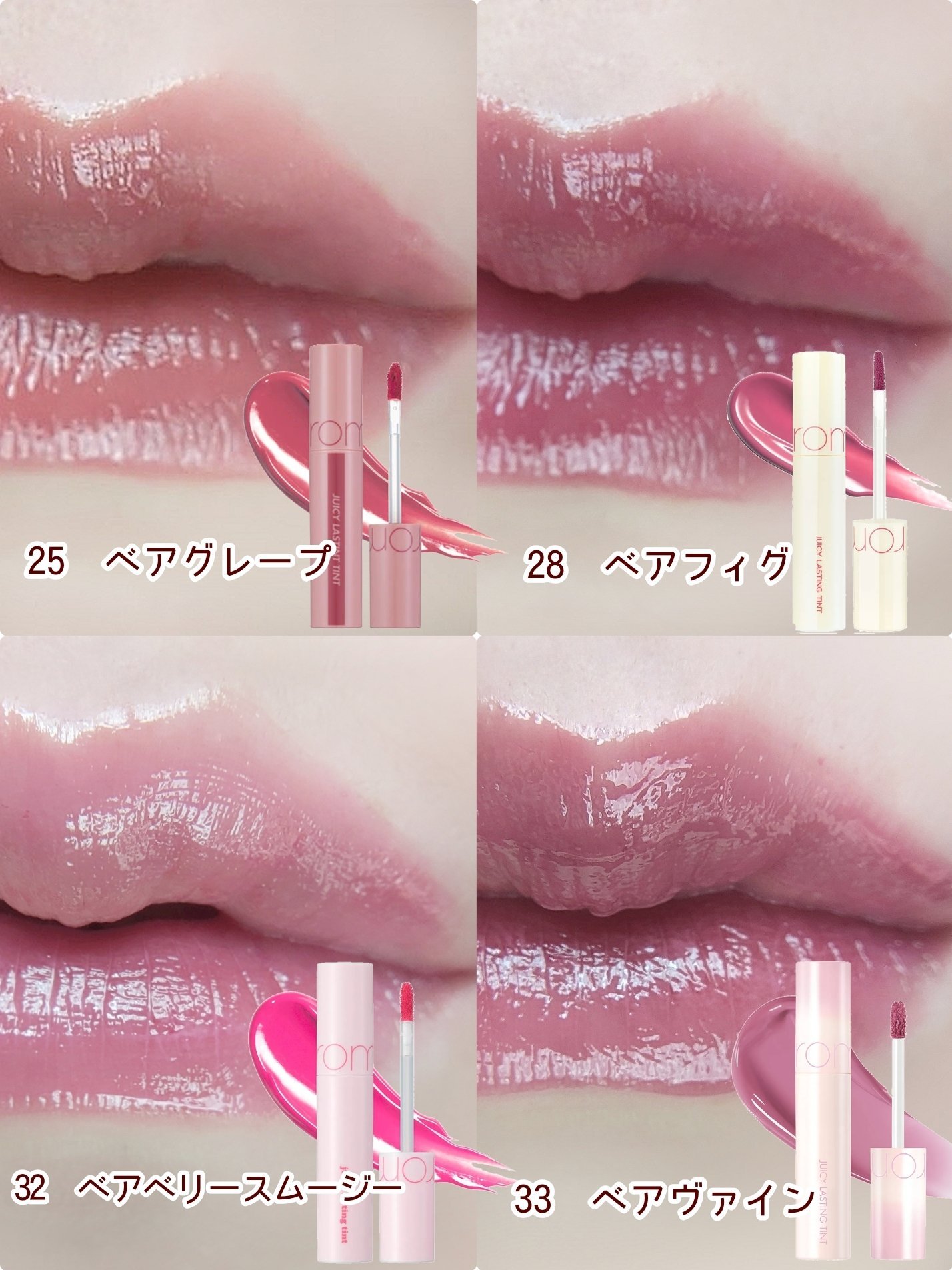 大好きなrom&ndのジューシーラスティングティントがリニューアルとのことで、今年最後のQoo10メガ割で、気になる新色の23ピーチピーチミーと、旧作からあって気になってたフィグフィグを購入しました💓 変わらず、ムラなく、ツヤぷり仕上がりで、ツヤぷりが続く😍❤️ フィグフィグは少し濃く感じて、ピーチピーチミーははじめイエベ春さん向けかなと思いきや、少し経つと青みが増してイイ感じに🥰