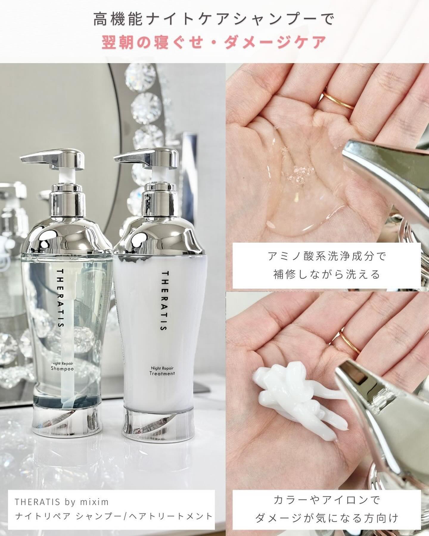 ♡THERATIS♡@theratis_official\寝ている間に髪を補修😴🌙✨/◼︎THRATISbymiximナイトリペアシャンプー容量:435ml¥1540(税込み)◼︎THRATISbymiximナイトリペアヘアトリートメント容量...