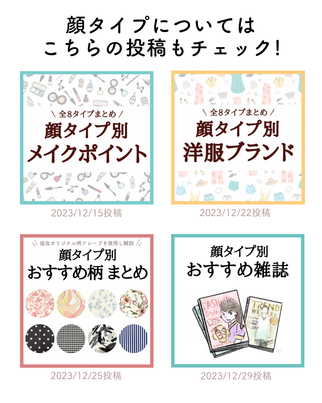 セルフでパパッとできる顔タイプ診断です📝 AとBどっちが多いか→子供顔か大人顔か CとDどっちが多いか→曲線的か直線的か 簡易的だけどなんとなくでも自分の顔タイプを知っていれば、洋服やコスメを選ぶときに参考になるかも? 暇なときにやってみてください!!☑️