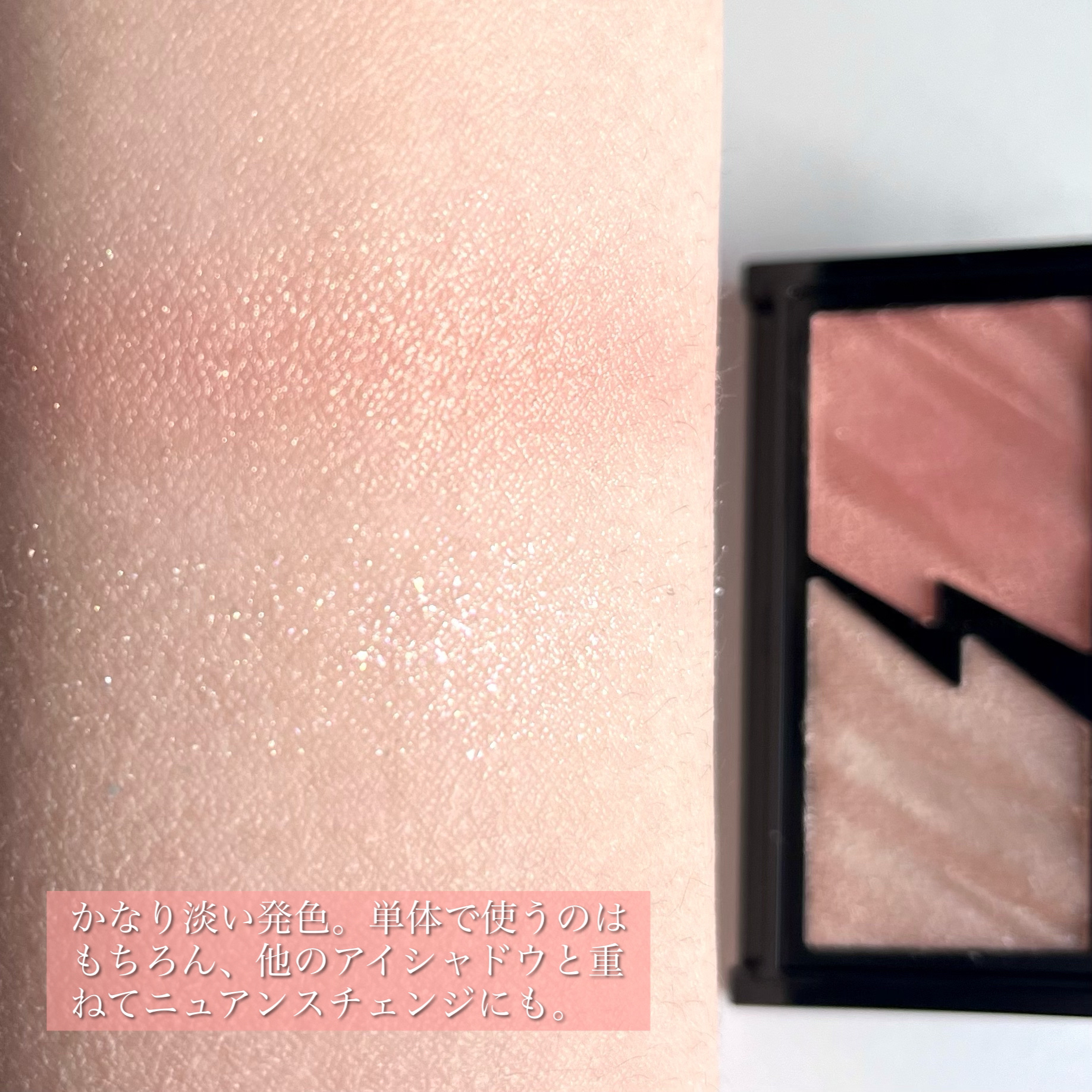 KANEBOの春の新色アイシャドウが可愛すぎた🤤💓 一目惚れして購入したのでご紹介。 光に当てるとびっくりするくらいキラッキラで華やかなの🫶 ツヤ質感と華やかなラメしか入っていない贅沢なパレット。 華やかさとナチュラルさの両立ができます☺️💖 ベージュの中にほんのり潜んだピンクもまた可愛い🍑🤍
