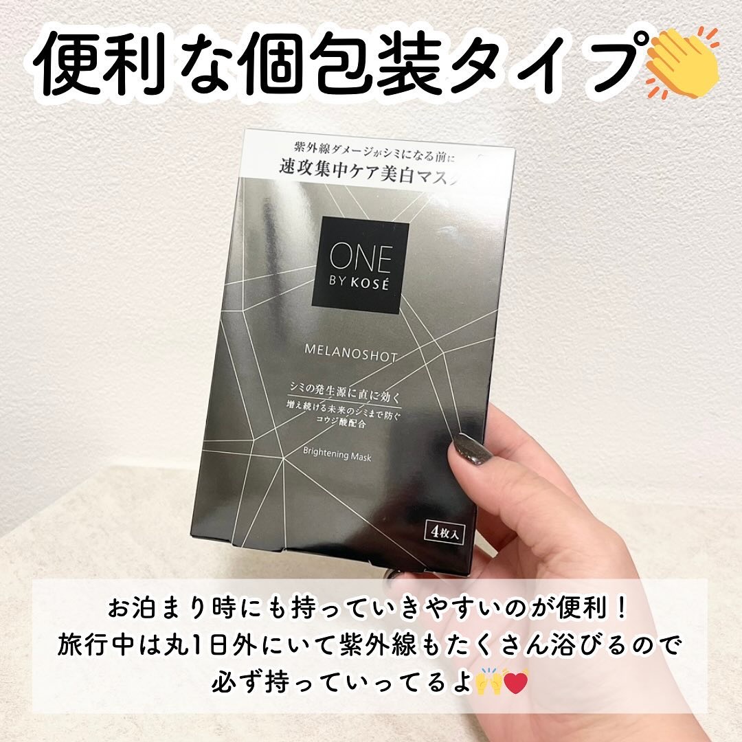 \脅威の美白マスク爆誕。/高級マスク紫外線ダメージがシミになる前に。速攻集中ケア【医薬部外品】ONEBYKOSEメラノショットWマスク4枚入り 5,500円(税込)☑️マスクは少~し、厚みがあるかな? それ以外は変わった所はなし☑️私が使っ...