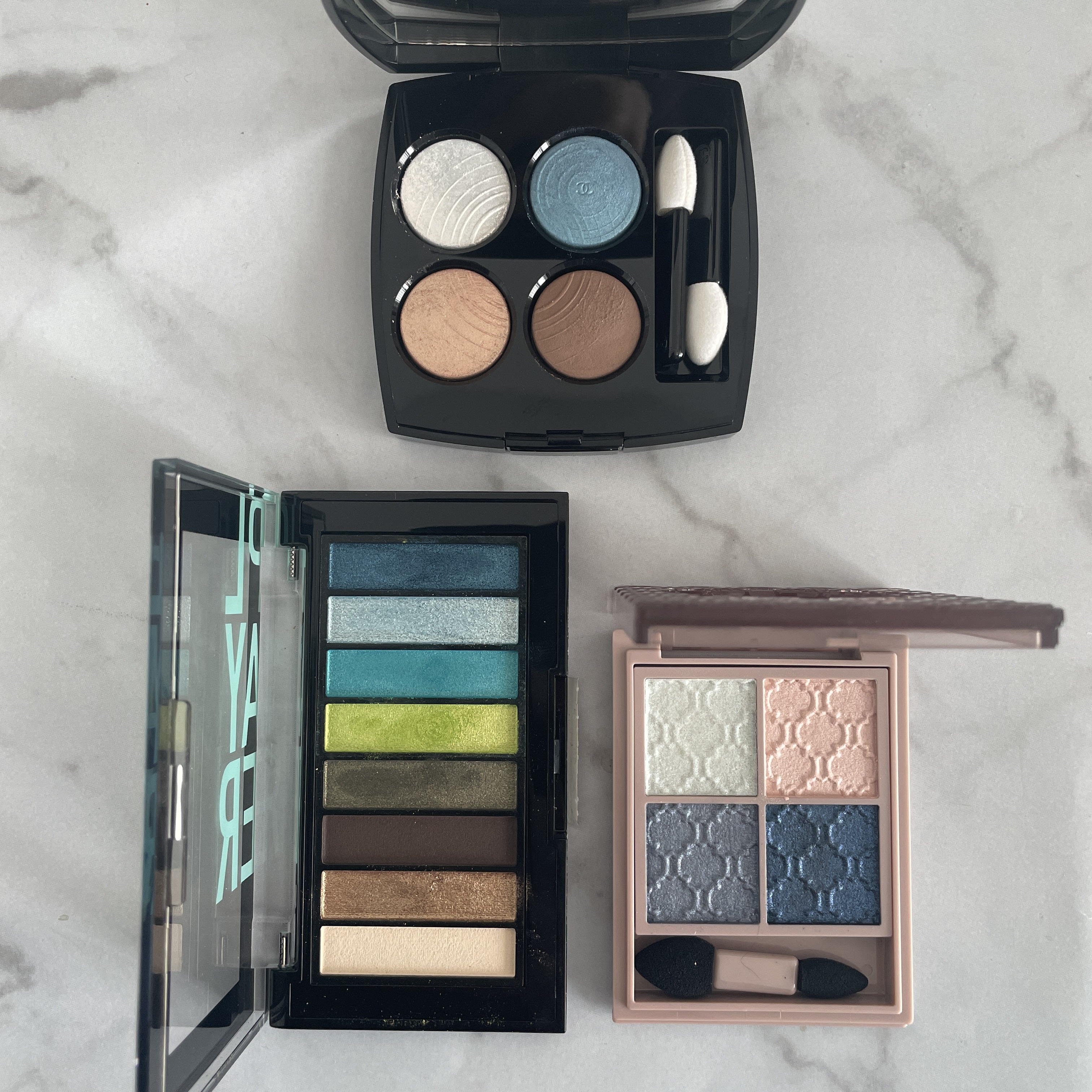 シャネルレキャトルオンブル78リヴァージュ清涼感が出ますねこのアイスブルー🩵発色が良くてきちんと目元に涼しげを出してくれます茶色?ブラウン?っぽい2色を少し明るさを抑えて奥行き感が出ます✨最後にラメ!ラメはパール、マーメイド、深海の宝物のイメ...