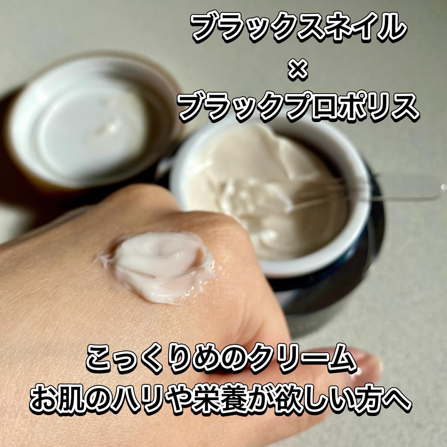 - 保湿だけでなく、透明感*1、ハリ、弾力のケアまでできる、クリームです。 ブラックスネイル*2を20%配合し、さらにブラックプロポリス*2を配合しているので、エイジングケア*3に必要な潤いをしっかりと肌に与え、もっちりと潤ったお肌に導きます。ナイアシンアミド*2やツボクサエキス*2なども含まれているので、様々な保湿ケアに対応できるため、肌の健やかさを保つことができます。 *1艶やかな肌印象のこと *2整肌成分 *3年齢に応じたお手入れ
