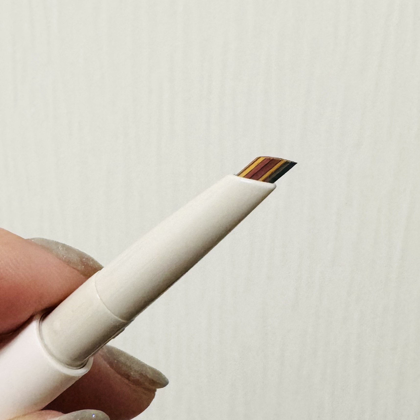 - ◆黄・赤・青の3色からなる多色な芯で、ペンシルでありながら立体感のあるあか抜け眉を演出 黒の顔料を使用せず、黄・赤・青の3色を混ぜ合わせ自然な眉色を表現。 多色で芯を構成するため、様々な眉色や髪色にもしっくりなじむ。ニュートラルなブラウンカラー。 ◆涙型の芯先形状で、面でも線でも描きやすい テクニックいらずで、広い面も細い箇所も描きやすい涙型の芯先形状。 ふんわり立体感がありながらも、眉尻などの細かい箇所はシャープで締まった印象へ。 ◆密着感があり、仕上がりが長持ち。化粧もち成分配合 肌や眉毛に密着し、汗・皮脂に強い粉体配合でくずれにくい処方設計。 ウォータープルーフ処方を採用。