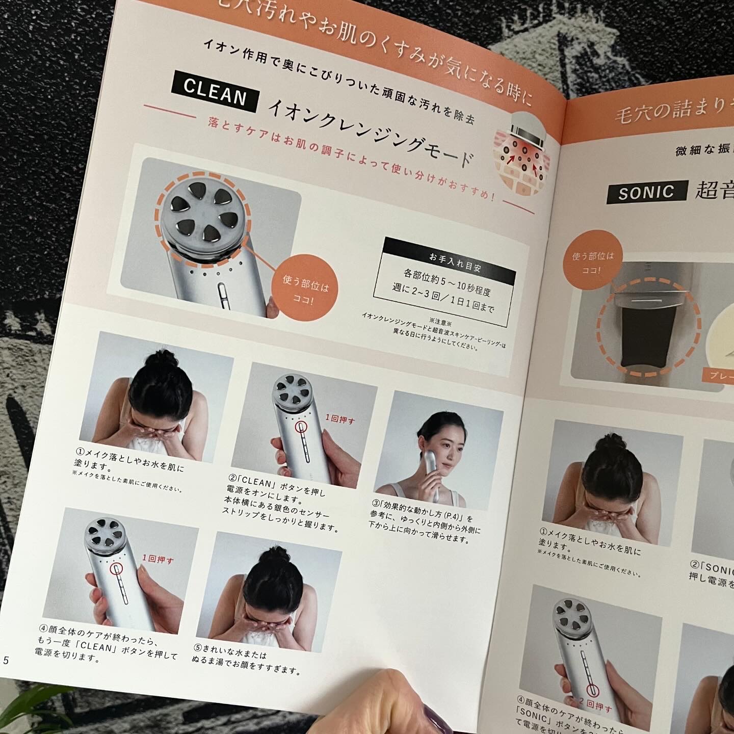 これ一台で6役の美顔器です😍 CLEAN・LEDSPA・EMS・RF・SONICの5つのボタンがあります。 やっぱり一番使うのはEMSかな☺️ 今まで使ってきたEMSは一定のリズムだったけど、メリフはタン・タン・タンのリズムで気持ちいいです😍 超音波振動で小鼻の古い角質や毛穴汚れを取り除くと、ツルツルして気持ちいいです☺️