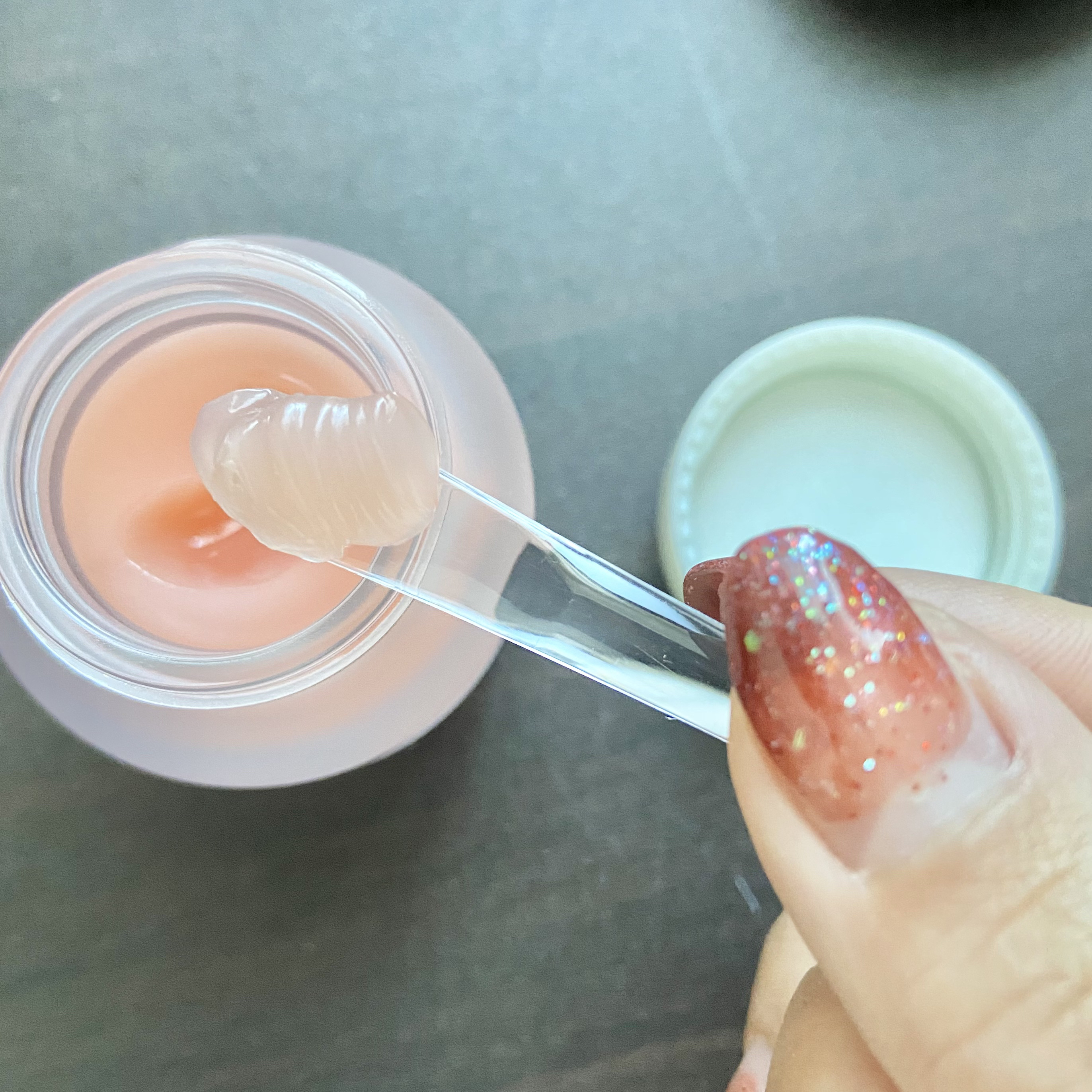 ビタグレイズドリップマスクを使用しました♡♡ こちらは4種類種類があるようで、私はピンク色のものを使用しました! 透明なスパチュラが付属していて、バームのようなリップを掬い、手の甲や唇につけるととろけてくれます♡♡💄💋 こちらのリップはベタつかないし、寝てる間にリップを塗ると口にオイルみたいなやつがいつのまにか入ってくるのが本当に嫌いなんですけど、個人的にはそれがなかったと思う🤔✨️