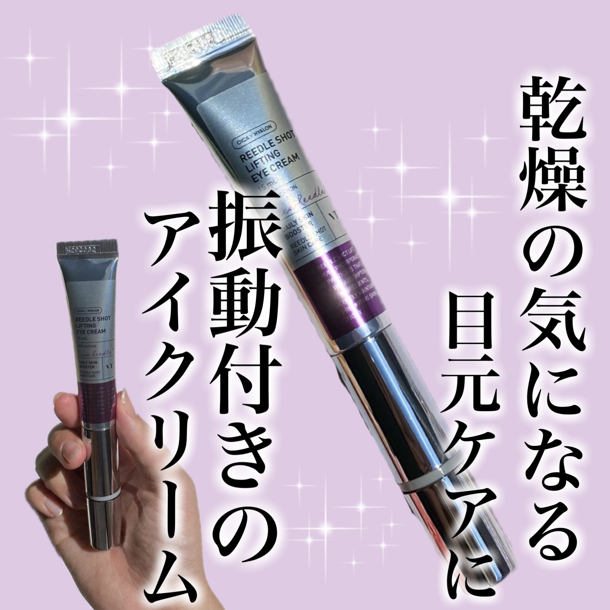 - 振動するアプリケーター付きのアイクリーム 肌を柔らげ目元や口周りなど ハリ弾力ケアが必要な個所へ集中アプローチ CICA REEDLE™(0.01%)* *ツボクサエキス(整肌)、シリカ(スクラブ) ■このような方へおすすめ 目元が乾燥してカサつきやすい方 目元のハリが衰え年齢肌を感じる方 手軽に目元ケアがしたい方 肌馴染みの良いアイクリームをお探しの方