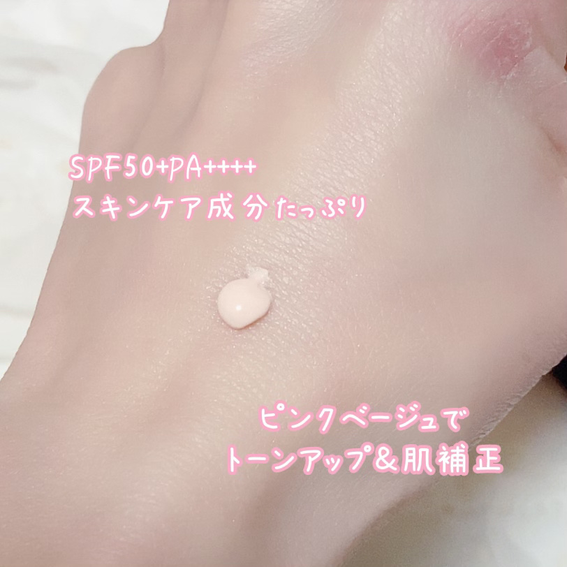 美白効果の高いグルタチオンやナイアシンアミドが入った、スキンケア効果の高い、化粧下地としても使える日焼け止め しっとりとしたテクスチャーですが、仕上がりはベタっとせず、メイクの密着力を高め、一日中潤いを感じます ほんのりピンクがかった色で、肌に高級感と多幸感を与えてくれます