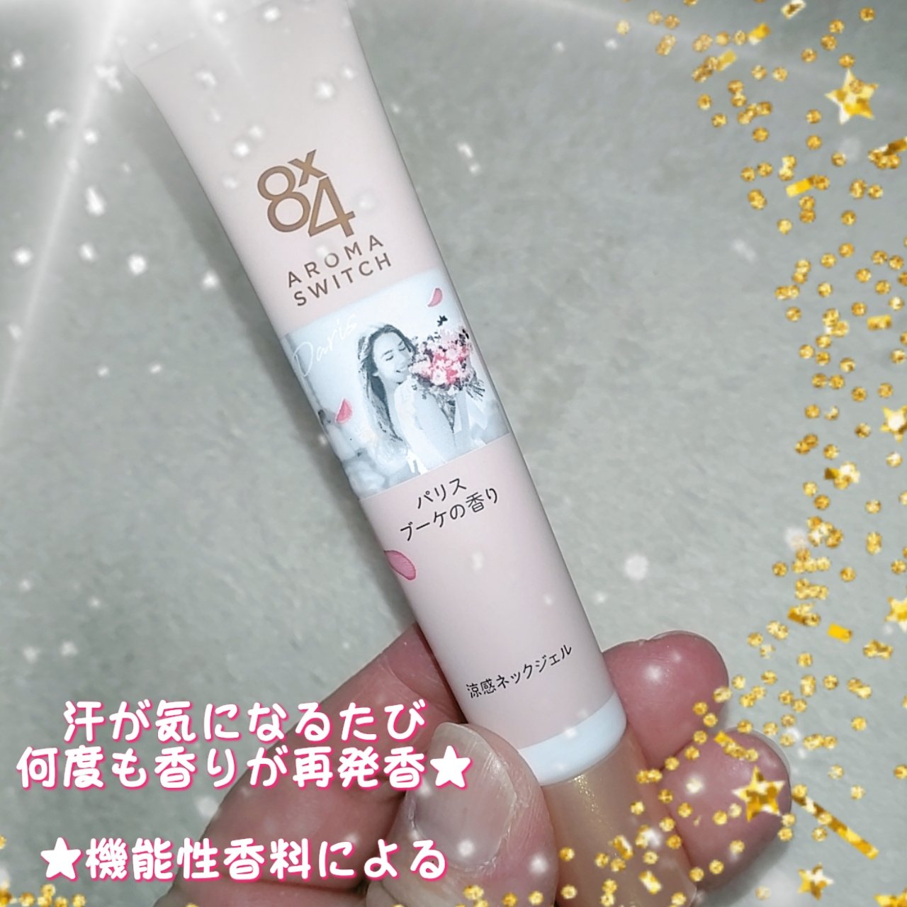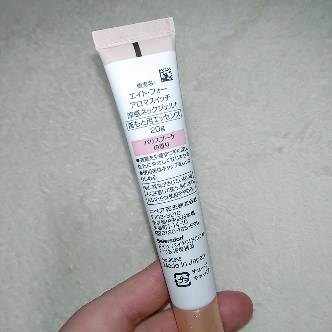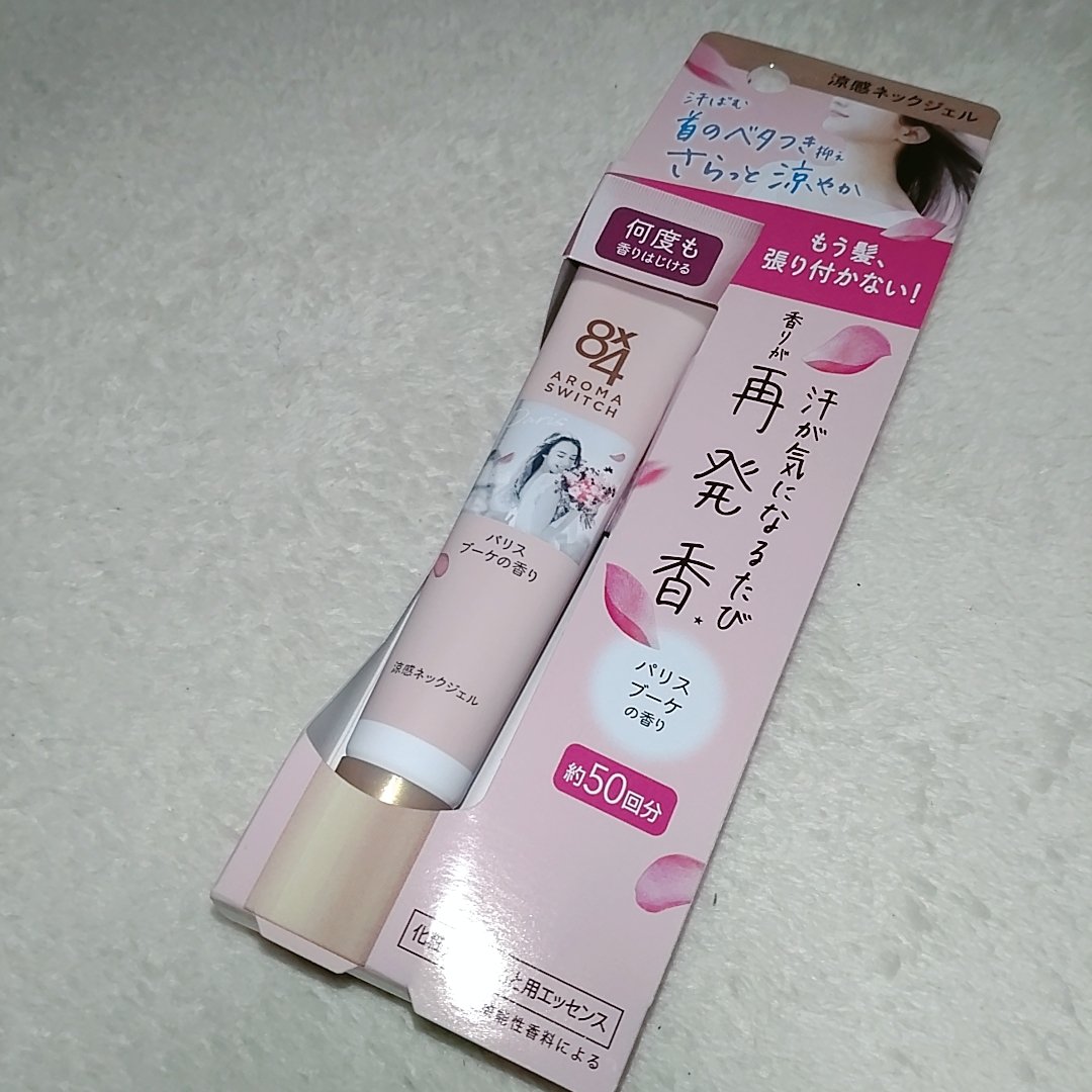 8x4からいただきました。8x4 アロマスイッチ 涼感ネックジェルパリスブーケの香り商品名:8x4 アロマスイッチ 涼感ネックジェル汗ばむ首のベタつき抑えさらっと涼やか 携帯できる汗ケアコスメ首のベタつきを抑え、髪の張り付きを防ぐだけでなく汗...