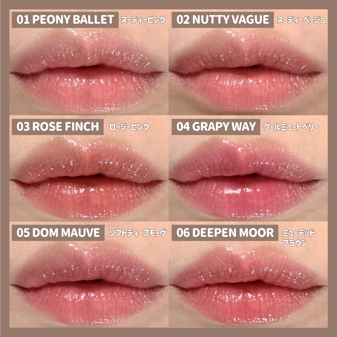 - <01 ピオニーバレエ(PEONY BALLET)> 水添ポリイソブテン、ダイマージリノール酸ダイマージリノレイルビス(ベヘニル/イソステアリル/フィトステリル)、リンゴ酸ジイソステアリル、ホホバ種子油、ジメチルシリル化シリカ、合成ワックス、イソステアリン酸ソルビタン、1,2-ヘキサンジオール、酸化チタン、フェノキシエタノール、香料、赤202、黄4、黄5、酸化鉄 <02 ナッティーヴェイグ(NUTTY VAGUE)> 水添ポリイソブテン、ダイマージリノール酸ダイマージリノレイルビス(ベヘニル/イソステアリル/フィトステリル)、リンゴ酸ジイソステアリル、ホホバ種子油、ジメチルシリル化シリカ、合成ワックス、イソステアリン酸ソルビタン、1,2-ヘキサンジオール、酸化チタン、フェノキシエタノール、酸化鉄、香料、黄4、赤202、黄5 <03 ローズフィンチ(ROSE FINCH) > 水添ポリイソブテン、ダイマージリノール酸ダイマージリノレイルビス(ベヘニル/イソステアリル/フィトステリル)、リンゴ酸ジイソステアリル、ホホバ種子油、ジメチルシリル化シリカ、合成ワックス、イソステアリン酸ソルビタン、1,2-ヘキサンジオール、酸化チタン、フェノキシエタノール、酸化鉄、赤202、黄5、香料、黄4 <04 グレーピーウェイ(GRAPY WAY) > 水添ポリイソブテン、ダイマージリノール酸ダイマージリノレイルビス(ベヘニル/イソステアリル/フィトステリル)、リンゴ酸ジイソステアリル、ホホバ種子油、ジメチルシリル化シリカ、合成ワックス、イソステアリン酸ソルビタン、1,2-ヘキサンジオール、酸化チタン、フェノキシエタノール、黄4、赤202、香料、青1 <05 ディムモーブ(DIM MAUVE) > 水添ポリイソブテン、ダイマージリノール酸ダイマージリノレイルビス(ベヘニル/イソステアリル/フィトステリル)、リンゴ酸ジイソステアリル、ホホバ種子油、ジメチルシリル化シリカ、合成ワックス、イソステアリン酸ソルビタン、1,2-ヘキサンジオール、酸化チタン、フェノキシエタノール、黄5、酸化鉄、赤202、香料、黄4 <06 ディープンムーア(DEEPEN MOOR) > 水添ポリイソブテン、ダイマージリノール酸ダイマージリノレイルビス(ベヘニル/イソステアリル/フィトステリル)、リンゴ酸ジイソステアリル、ホホバ種子油、ジメチルシリル化シリカ、合成ワックス、イソステアリン酸ソルビタン、1,2-ヘキサンジオール、酸化チタン、フェノキシエタノール、黄5、酸化鉄、黄4、赤202、香料 <07 スプリングフィーバー(SPRING FEVER)> 水添ポリイソブテン、ダイマージリノール酸ダイマージリノレイルビス(ベヘニル/イソステアリル/フィトステリル)、リンゴ酸ジイソステアリル、ホホバ種子油、ジメチルシリル化シリカ、合成ワックス、イソステアリン酸ソルビタン、1,2-ヘキサンジオール、フェノキシエタノール、赤104(1)、黄5、酸化チタン、赤202、香料、酸化鉄、黄4 <08 チェリーアップ(CHERRY UP)> 水添ポリイソブテン、ダイマージリノール酸ダイマージリノレイルビス(ベヘニル/イソステアリル/フィトステリル)、リンゴ酸ジイソステアリル、ホホバ種子油、ジメチルシリル化シリカ、合成ワックス、イソステアリン酸ソルビタン、1,2-ヘキサンジオール、赤104(1)、フェノキシエタノール、酸化鉄、赤202、香料、黄5、青1、黄4