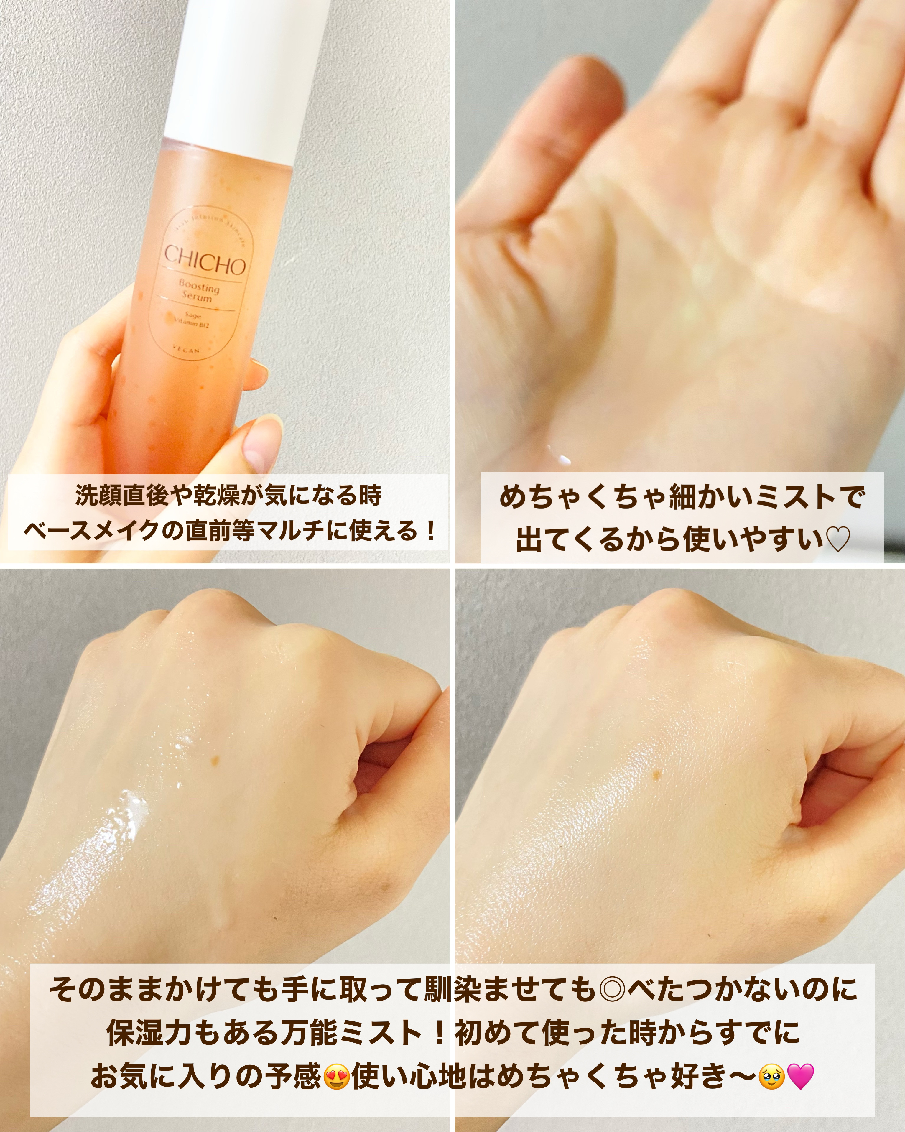 【韓国口コミサイト・ファへでミスト部門1位の話題のスキンケア】🇰🇷@chicho.official.jpのミストがめちゃくちゃ当たりだった!ブースティングミストセラムはお肌がしっとりと潤って乾燥をケアしてくれるミストです🕊️その潤いと仕上がり...