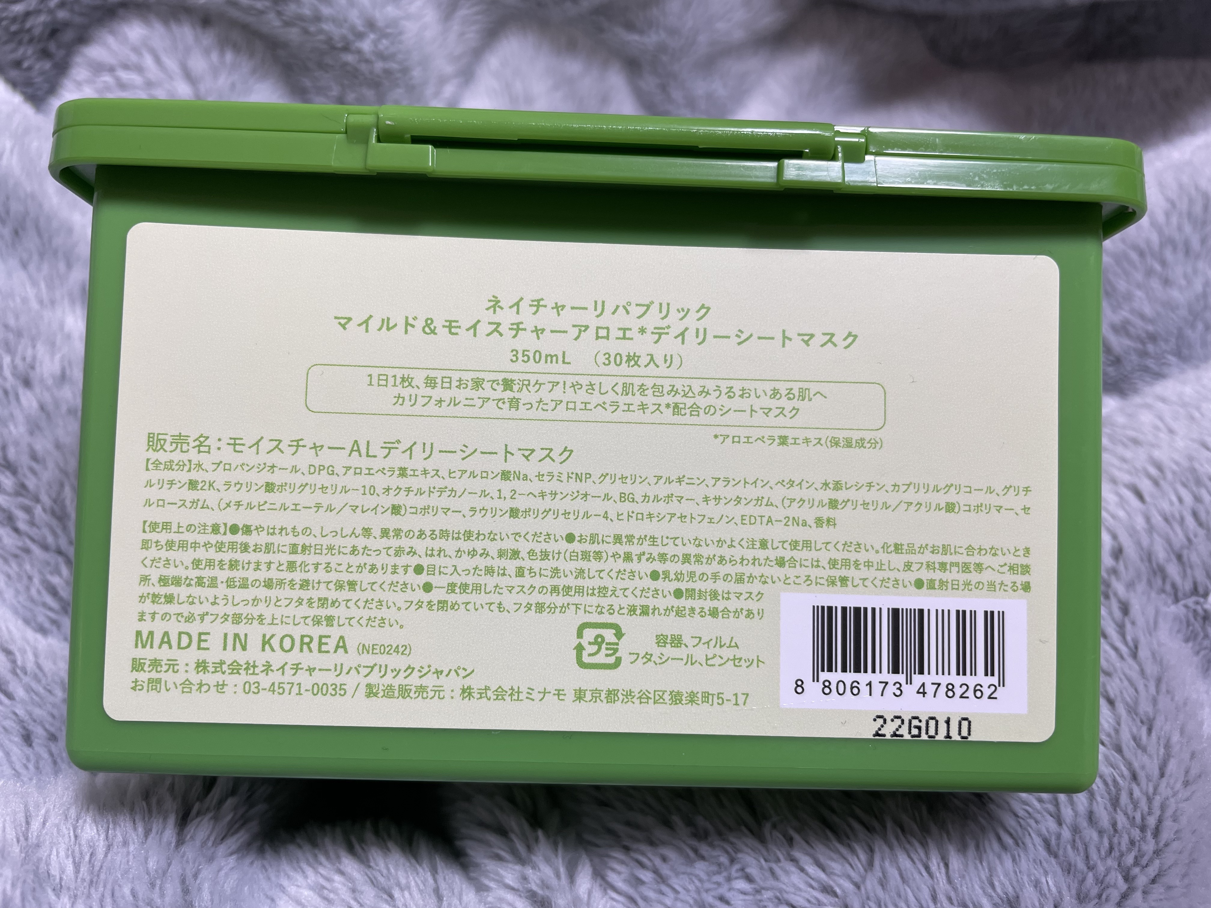 商品詳細情報ネイチャーリパブリック マイルド&モイスチャーアロエデイリーシートマスク