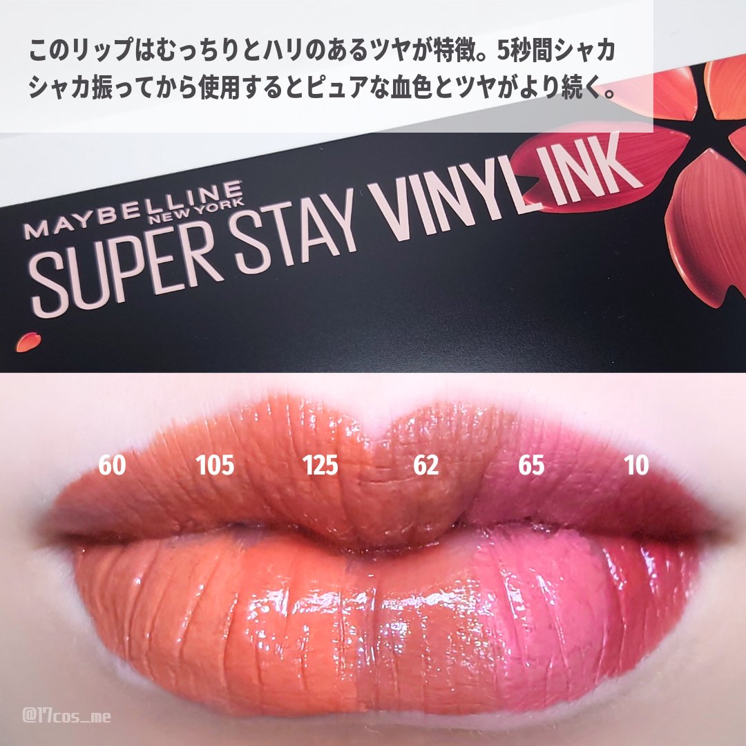 - メイベリン人気No.1リップ からツヤタイプついに誕生!*1 シャカシャカ振って!#落ちないリップ*2 色・ツヤ・仕上がり、全てロック。 〈製品特徴〉 ①シャカシャカ振って、長持ち効果! 膜形成成分*3と高濃度ピグメント*4の2層構造。 シャカシャカ振ると膜形成成分*3と高濃度ピグメント*4が混ざり、 色、ツヤ、仕上がりの長持ち効果! ②色もツヤも落ちない! 最長16時間続く、#落ちないリップ*2 メイベリン独自のトリプルロックフォーミュラ。色・ツヤ・仕上がり、全てロック。 食べても、飲んでも、塗りたての仕上がりが落とすまで続く。*2 ③濃密な発色とツヤをひと塗りで。 塗った瞬間、ムラなく発色。 顔色まで明るくトーンアップするような仕上がりに。*5 ④唇を包み込み、うるおい感ある仕上がりに。 乾燥しにくく、一日中*6心地良い仕上がりに。 塗った瞬間、唇をふっくらとみせ、縦じわが目立ちにくい。 *1:インテージSRI+調べ。2018年9月~2022年7月までのスーパー、ドラッグストア等におけるメイベリン ニューヨーク リップカテゴリーでの売上金額に基づく。 *2:着用16時間を想定した最長の場合において。メイクアップリムーバーで落とすことが可能です。メイベリン ニューヨーク調べ。個人差があります。 *3:トリメチルシロキシケイ酸、ポリプロピルシルセスキオキサン、アルキル(C30-45)ジメチルシリルポリプロピルシルセスキオキサン、ポリメチルシルセスキオキサン/トリメチルシロキシケイ酸。 *4:メイベリン従来品(ウォーター シャイニー ボリューミー パール)と比較において、3倍のピグメントを配合 *5:メイクアップ効果 *6:メイベリン ニューヨーク調べ。個人差があります。