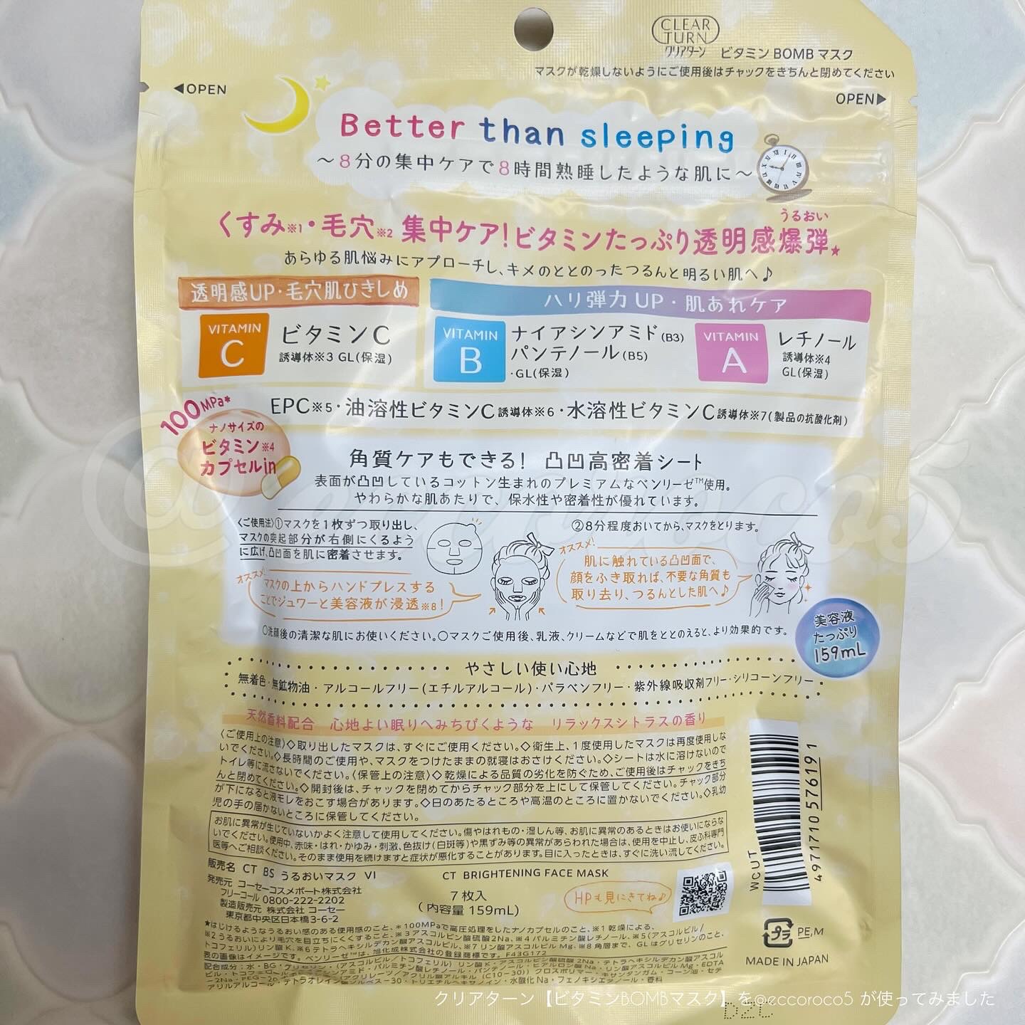 商品詳細情報クリアターン ビタミンBOMBマスク