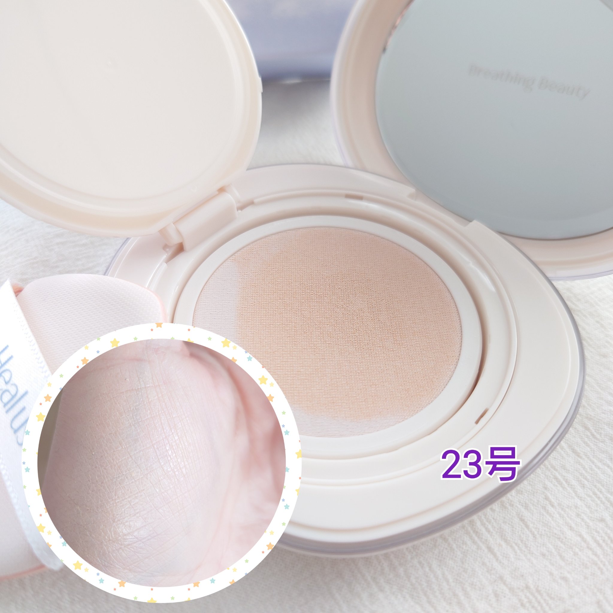 - テクスチャーは、肌が呼吸をするように、軽くて快適な、スキンブリージングテクスチャーです。 スキンケア成分を70%も使っているので、オイル感のあるツヤではなく、しっとりとして潤いが感じられる水分GLOWです。 光の屈折を利用して肌が輝きます。 パフでたたきこむことで、ぴたっと肌に密着し、毛穴もしっかりカバーしてくれます。